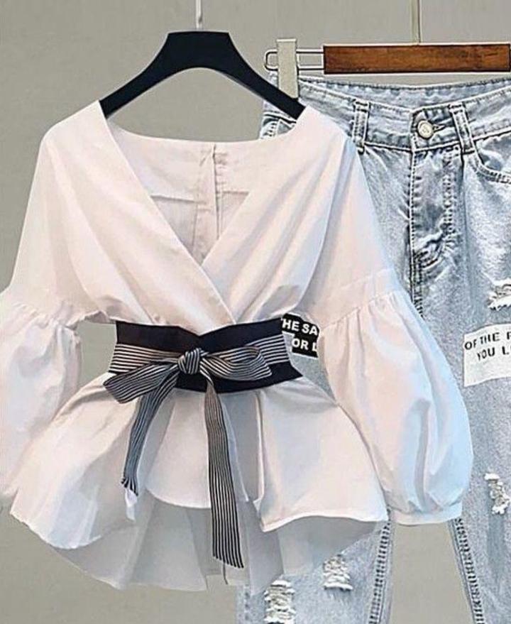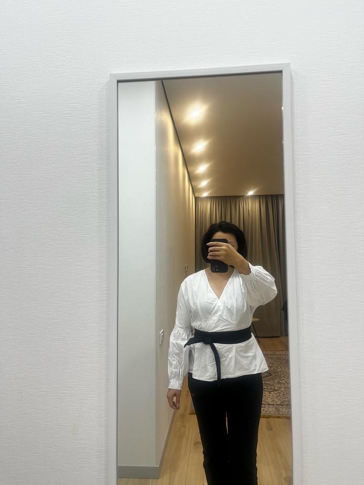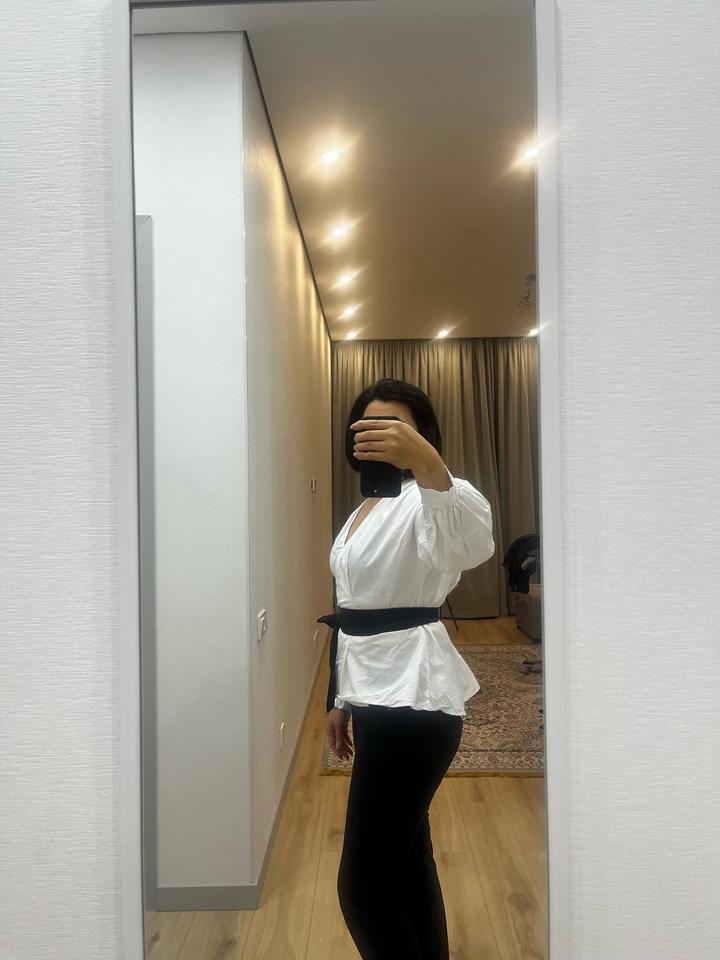 Женская блузка, белого цвета, размер 48. Сшита на заказ, 2 пояса (чёрный и белый) Артикул: 323291