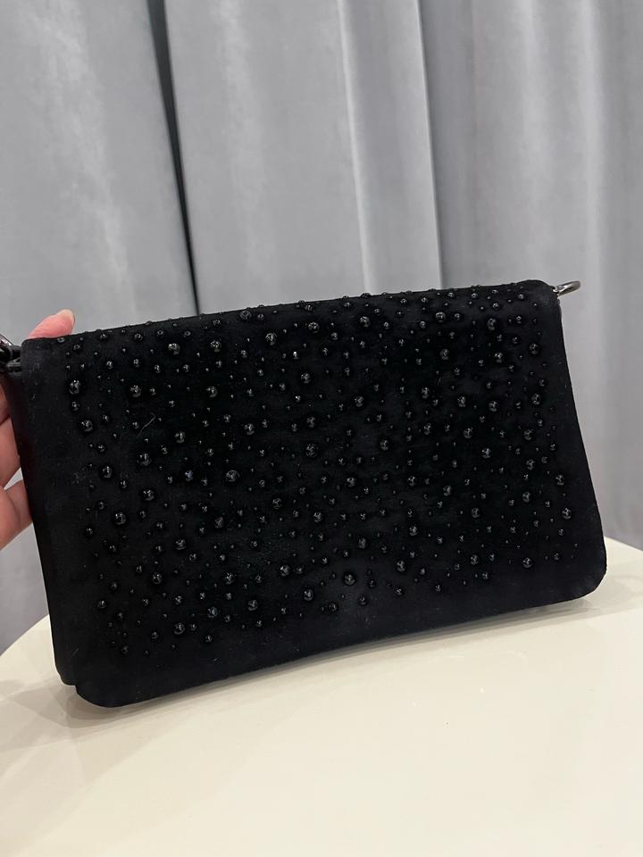 Вечерний клатч. Комбинированный, передняя часть замша украшена черными стразами (смотрится очень красиво) Артикул: 323299