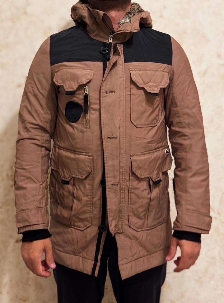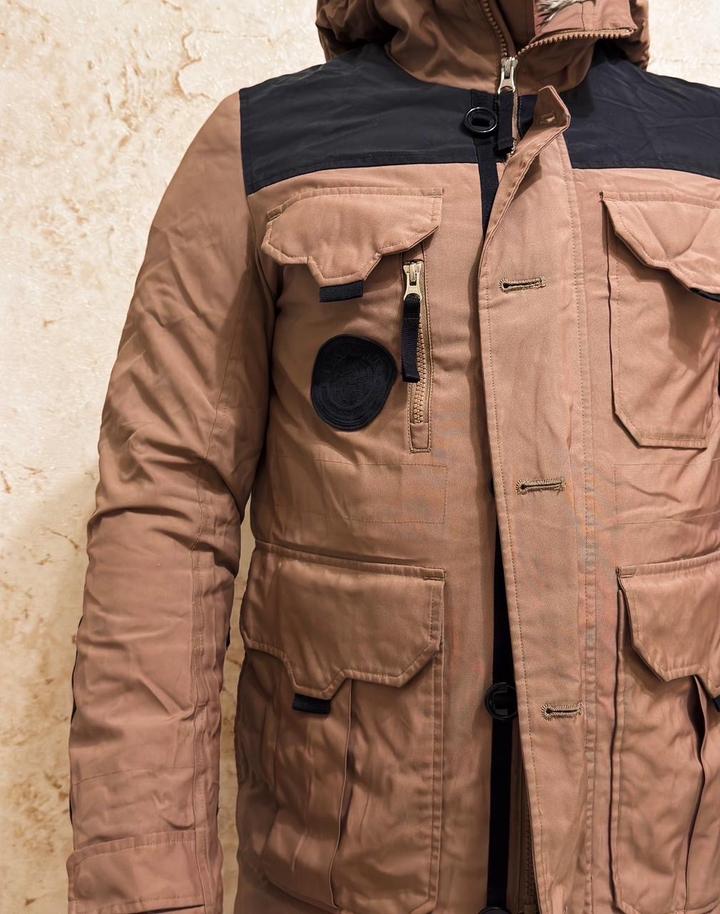 Зимняя куртка Lacoste. Состояние ниже среднего. Выцвел цвет. На одном кармане заклёпка выпала, местами замарана. Наполнитель пух/перо. Артикул: 323331