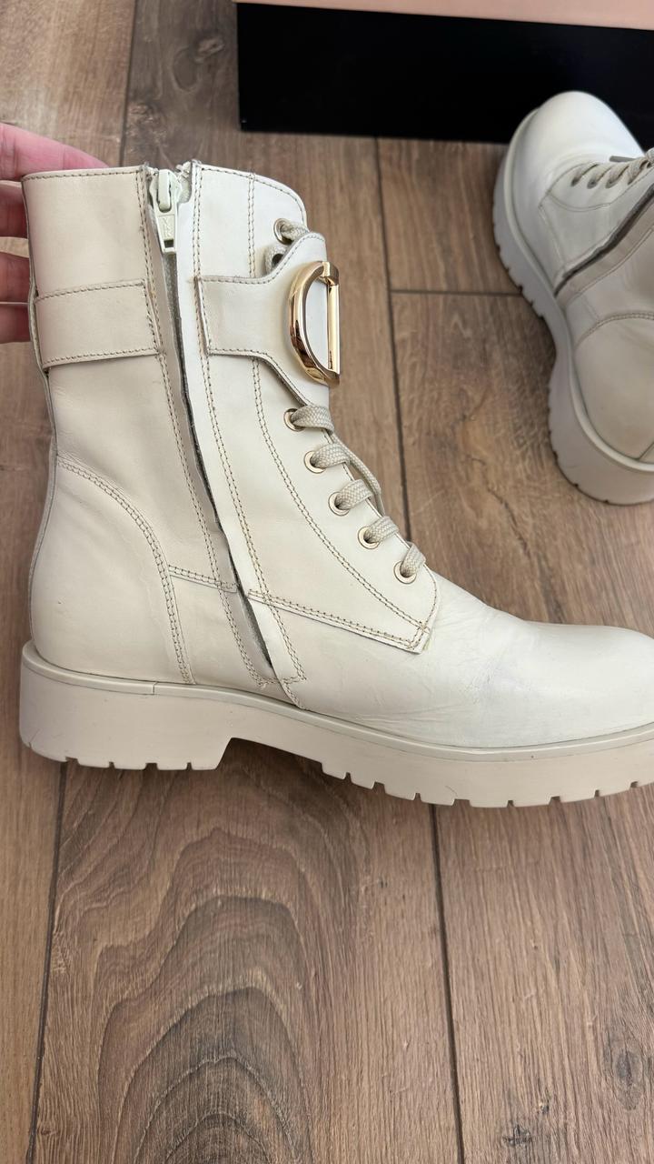 Натуральная кожа, бежевый/молочный цвет Очень красивые . Надеты 1 раз на 15 минут, не подошел размер. Состояние новых. Заказывала с Италии , Милан , покупала за 175.000 + доставка Артикул: 323438