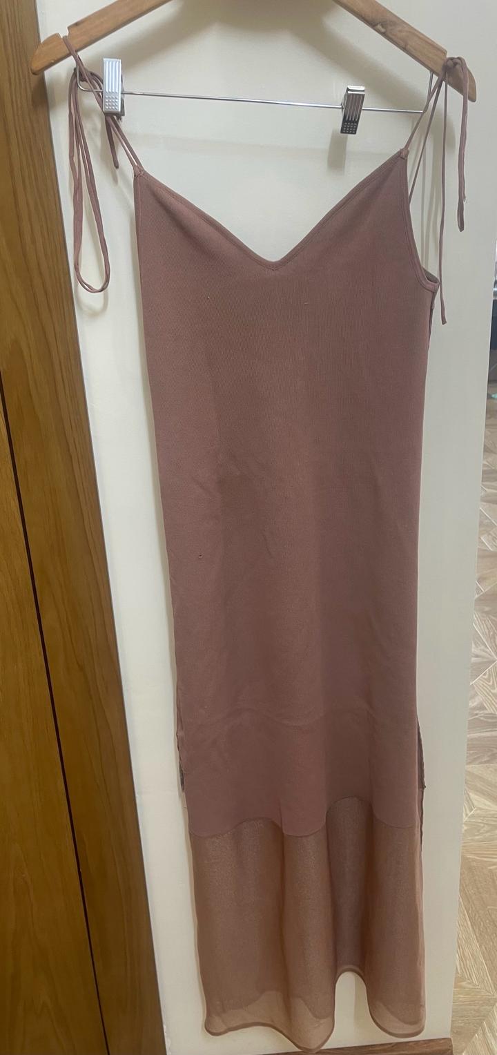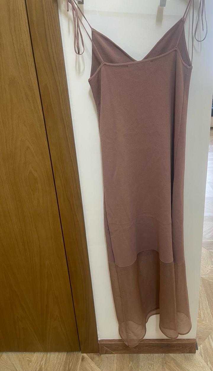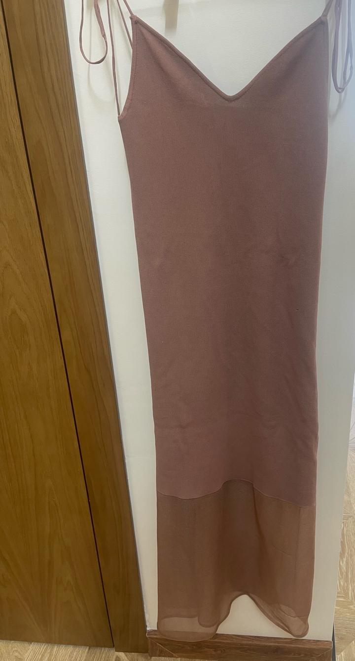 Платье ZARA • размер M (EUR M / USA M / MEX 28) Минималистичное и женственное платье-комбинация в нежном оттенке какао. Мягкий материал красиво ложится по фигуре, а нижняя часть из лёгкой сетки придаёт образу утончённость и лёгкость. Регулируемые бретели позволяют подстроить посадку под себя. 🤎 Цвет: тёплый какао 🤎 Материал: лёгкий трикотаж с полупрозрачным низом 🤎 Состояние: отличное, есть маленькая незаметная дырочка с внутренней стороны (не видна при носке), также есть затяжки на капроне Артикул: 323491