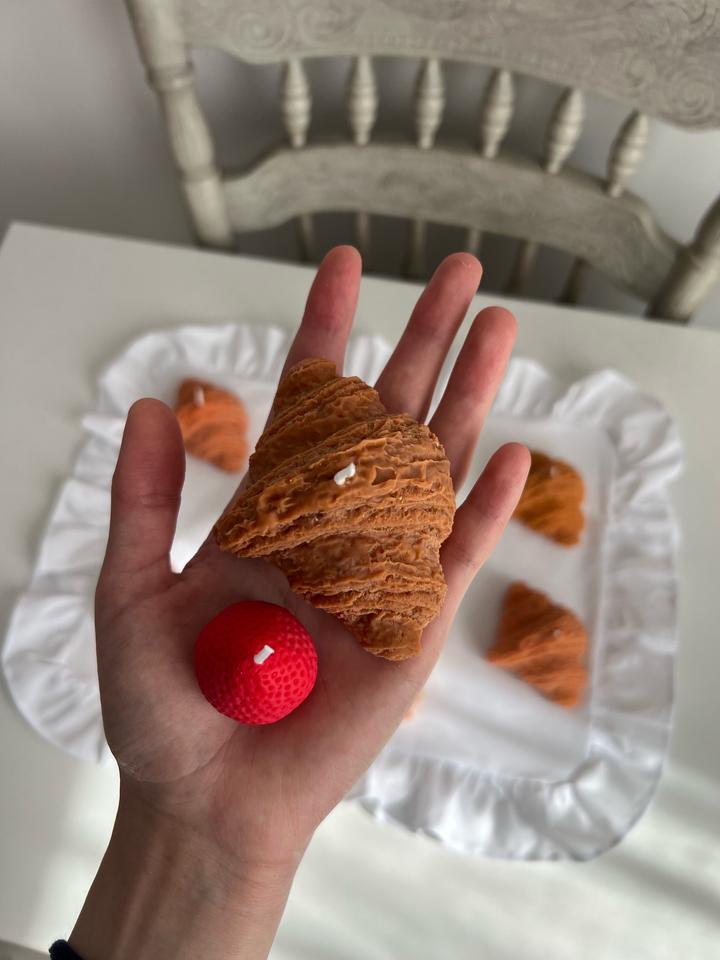Набор свечей: круассан и клубника. Аромат миндального круассана и свежей клубники. Надежно Упакованы в гофрокартон. Очень интересный подарок, который запомнится надолго. На день рождения, Новый год или любой другой праздник. Свечи изготовлены вручную из соевого воска и премиальных аромамасел из США и России. Размеры указаны на фото. Артикул: 324239