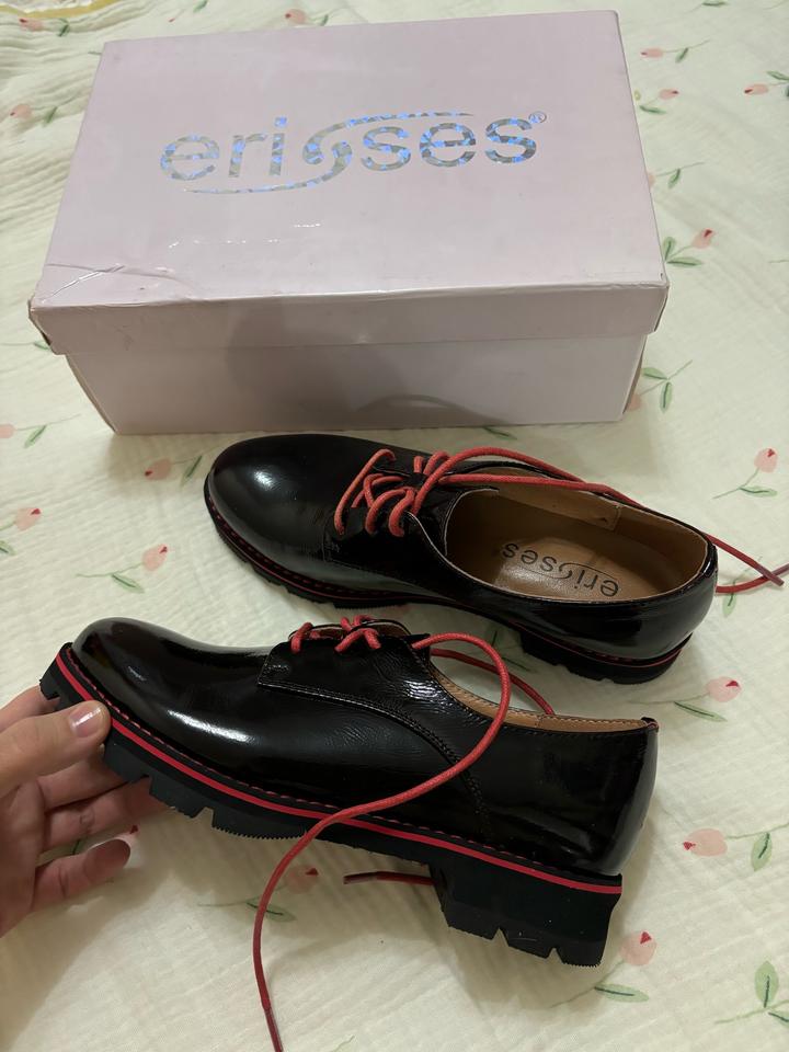 1. Классические лоферы из натуральной лаковой кожи от фирмы Elisses. Размер 33. Цвет черный. 2. Классические лоферы на шнуровке из натуральной лаковой кожи от фирмы Elisses. Размер 33. Цвет красное вино. Отлично подойдут в школу. Цена указана за одну пару обуви Артикул: 324466