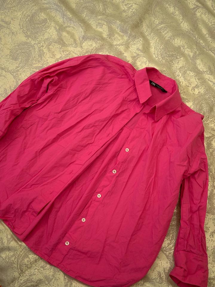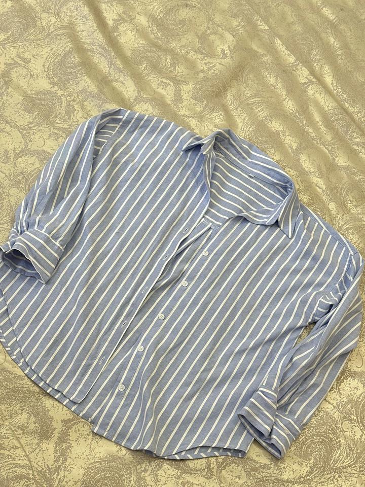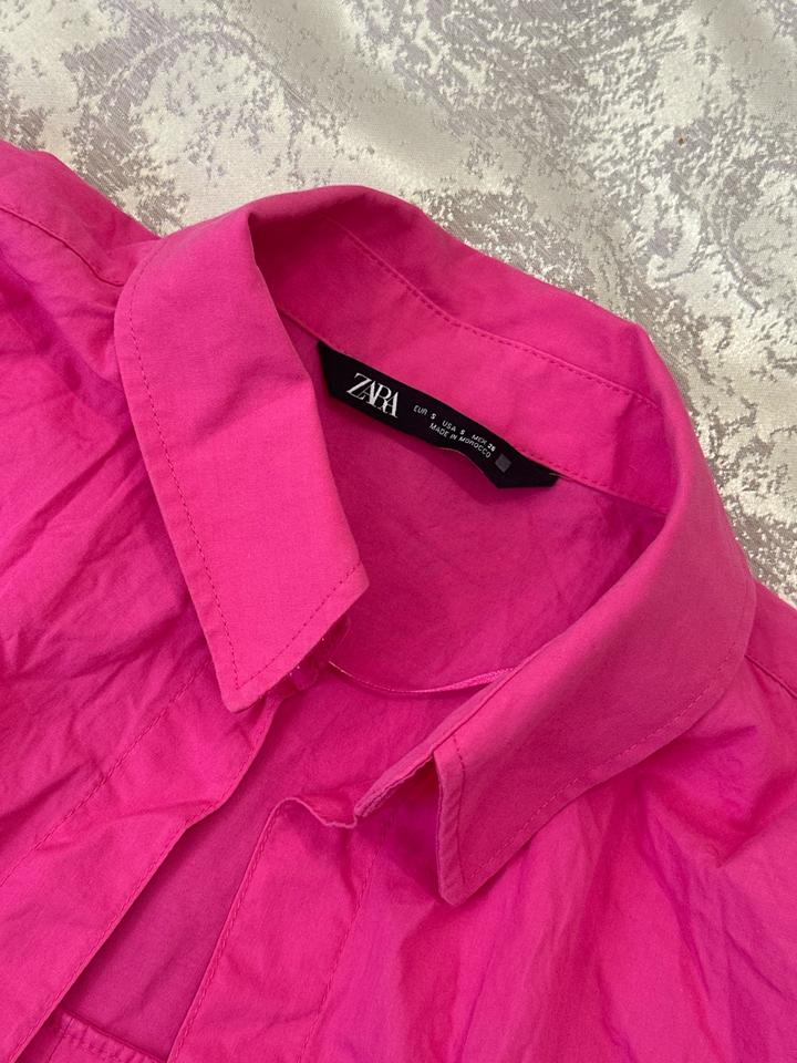 Рубашка розовая и синяя в полоску zaraS