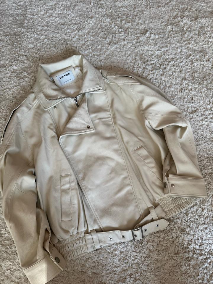 Современная косуха размера Оверсайз цвет Молочный, Невероятно нежная приятная не тяжелая куртка Артикул: 327147