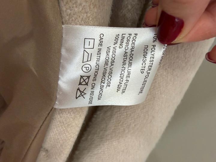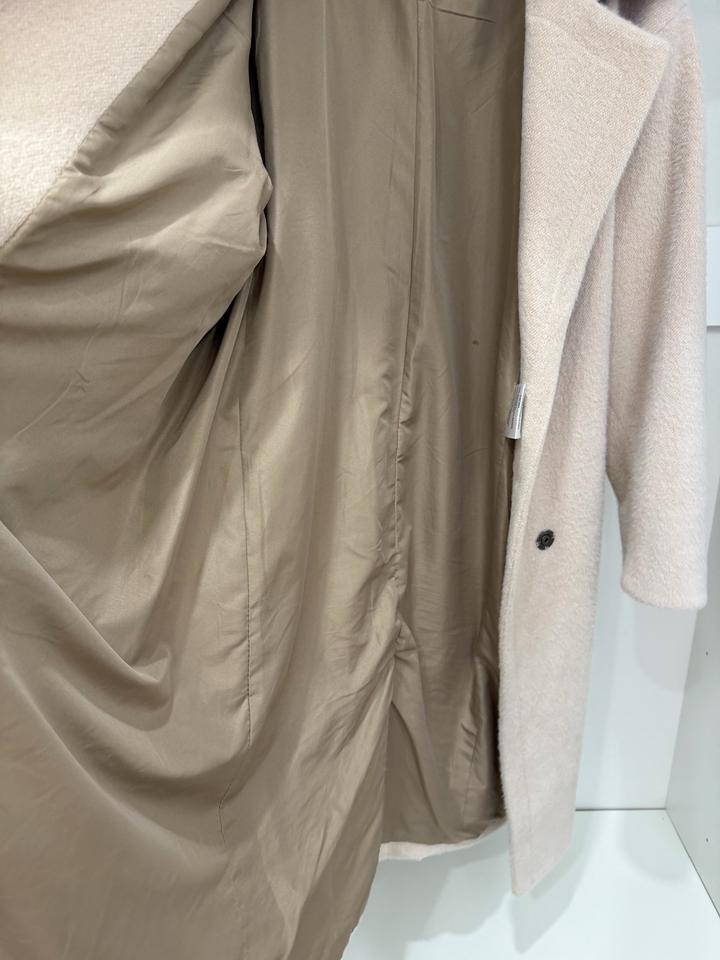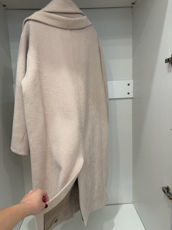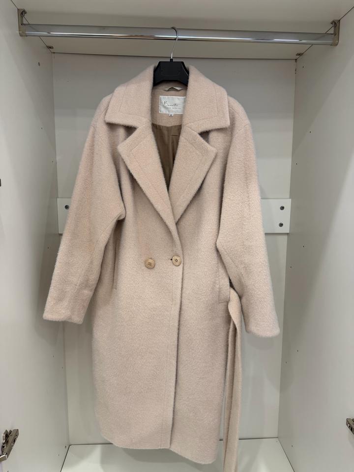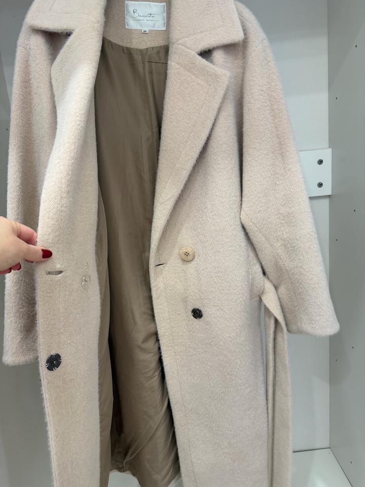 Бежевое теплое пальто с поясом, длина 106 см, в хорошем состоянии Артикул: 327649