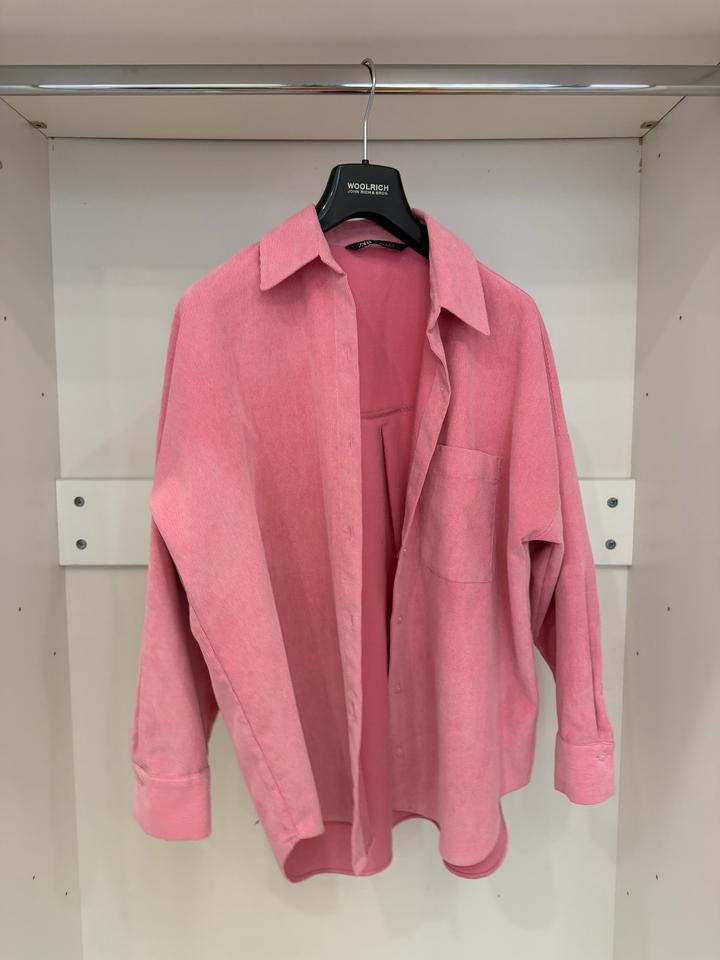 Рубашка оверсайз Zara, размер S, ❗️но подходит на размер L❗️, под микро вельвет, розовая, б/у, в хорошем состоянии Артикул: 327707