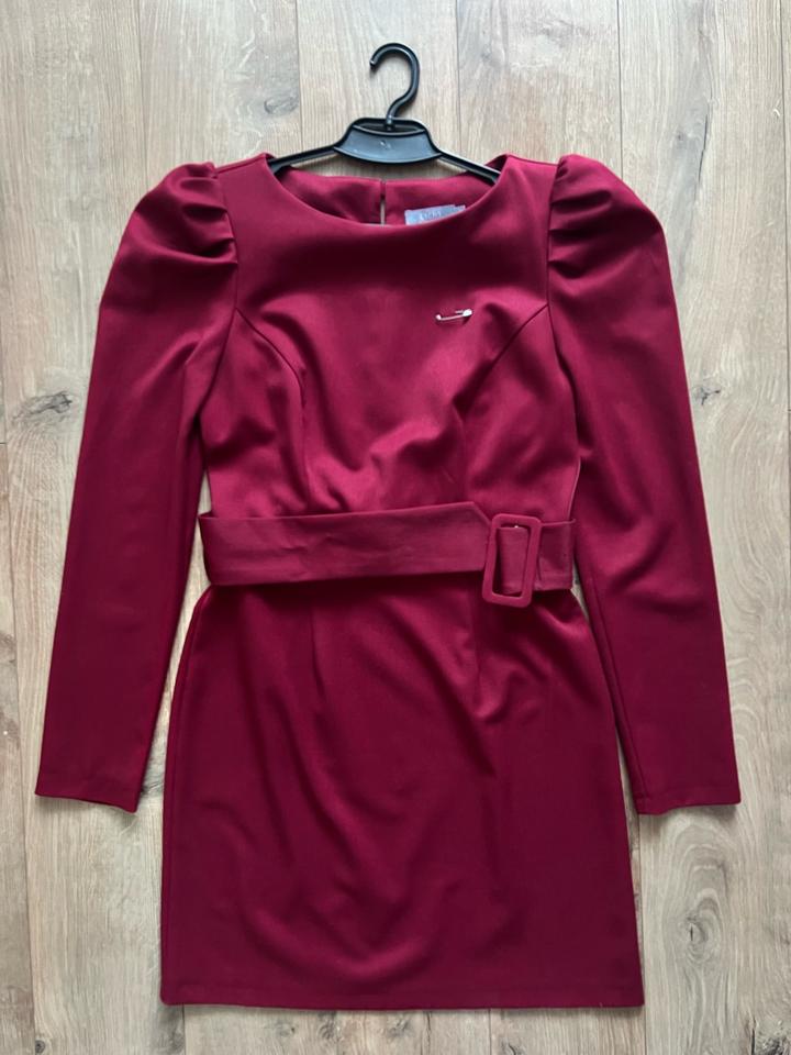 Бордовое платье от Lichi, размер М, маломерка, с ремнем. В составе в основном вискоза. Идет как мини. Прикреплено примерное фото. Дефектов нету, так как носила очень редко, 2-3 раза на мероприятия. Артикул: 328293