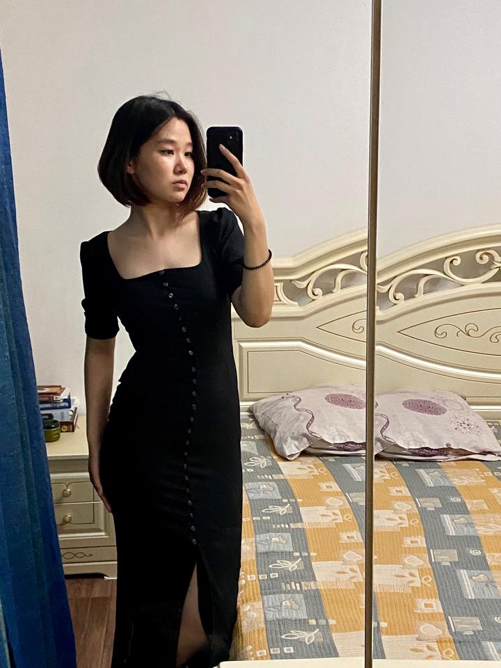 Черное платье на рабочих пуговицах. Подойдет на размер S-M. Тянется. Без дефектов Артикул: 329445