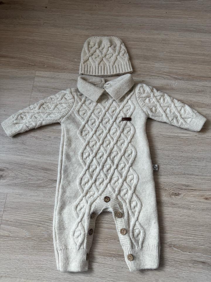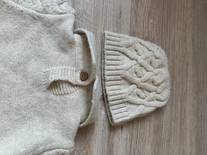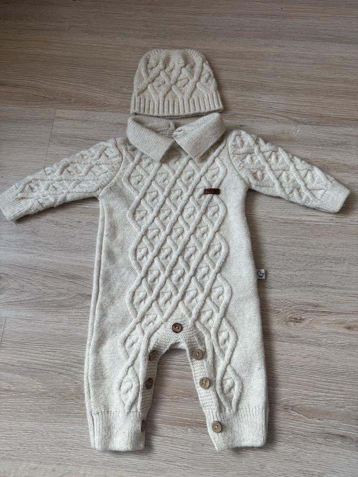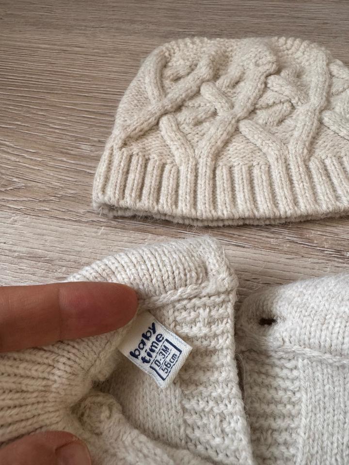 Белый тёплый комбинезон и шапочка на ребенка от 0 до 3х месяцев. В отличном состоянии. Бренд Baby time. Артикул: 329584