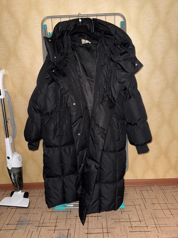 Зимний пуховик, удлиненый, черный Стильно выглядит, на капюшоне замок, прижелании можно растянуть получится красивый воротник Артикул: 331171