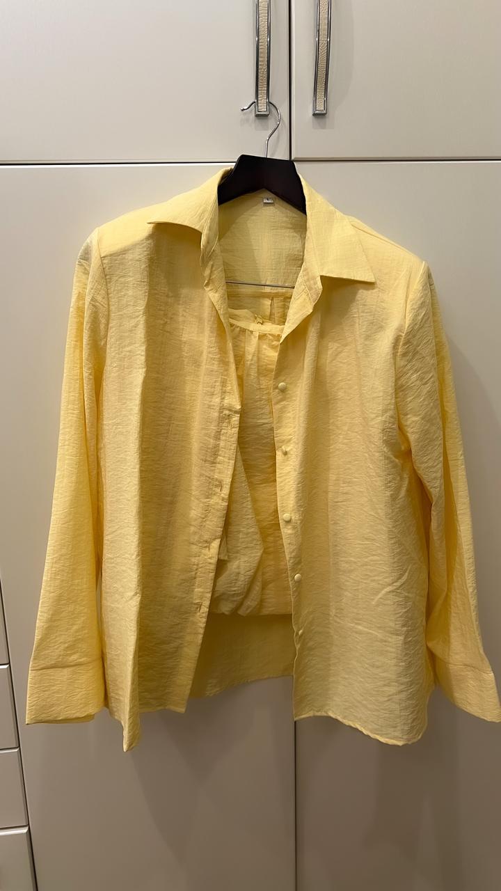 Летняя двойка, трендовая в тёплом желтом цвете. Не носила, не подошел размер. На фото помятый костюм, не отглаживала после покупки. Прошу понять и простить🙂 Артикул: 332685