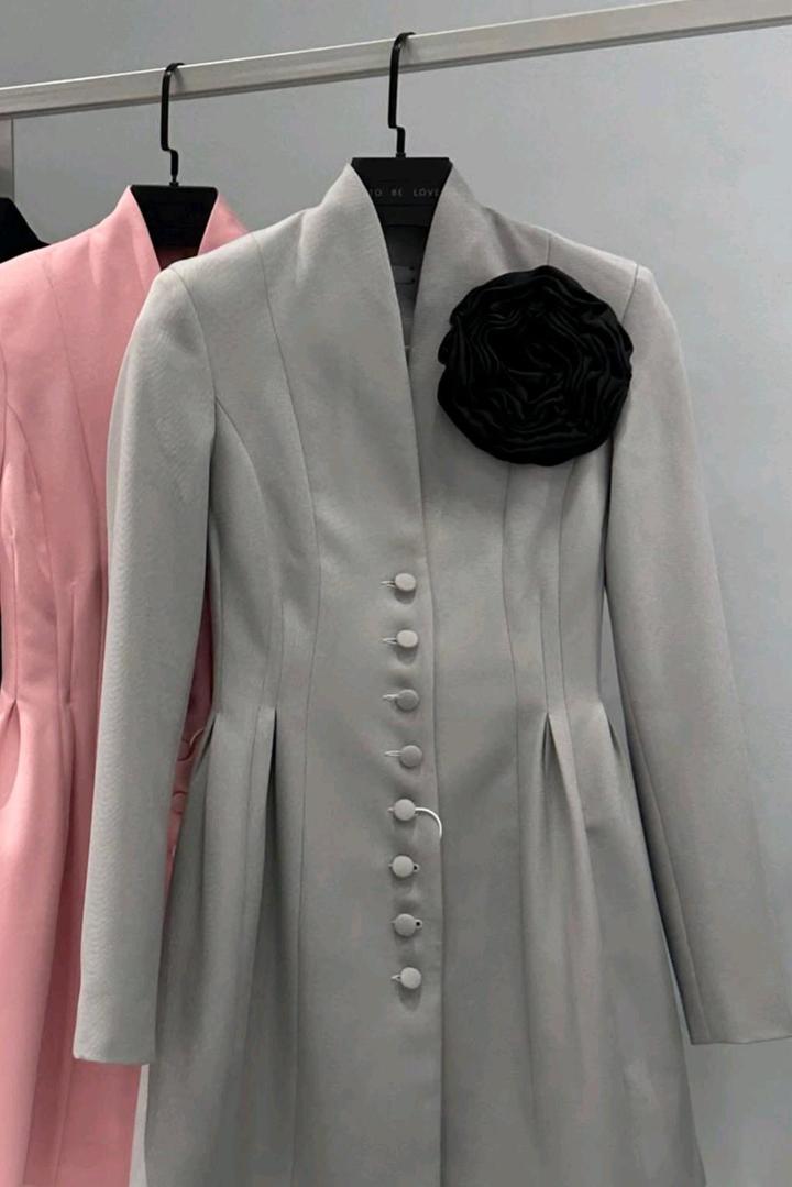 Костюмное платье с цветком чернымL