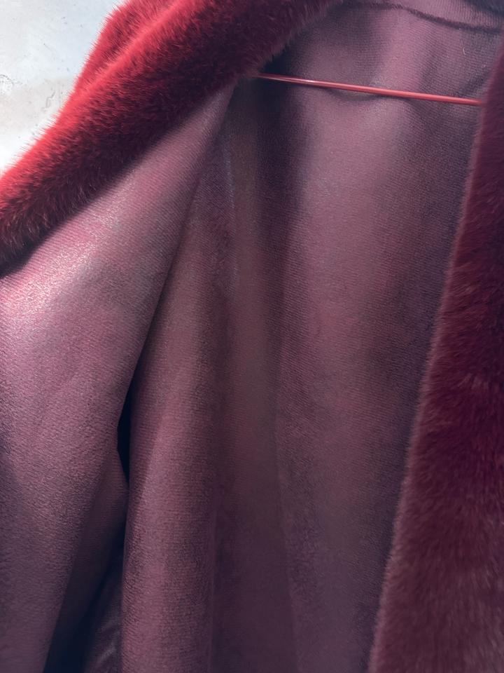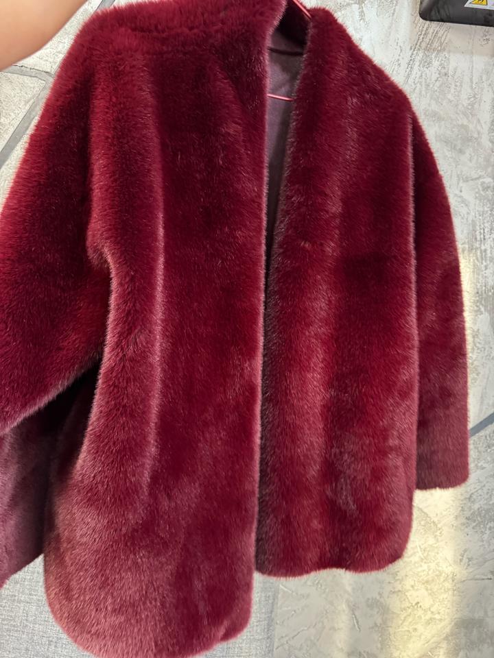 Шикарный винный оттенок,глубокий.Камера его не передаёт.Очень красивая шубка.Надевала один раз.Подойдет для авто леди,либо для зимы в теплых краях.Поздняя осень/ранняя весна.Пуговиц нет,не застегивается.Можно дополнить каким-нибудь ремешком,будет теплее и стильно.Размер подойдет от 48 до 52.У меня 46,на мне свободно сидела,но мне так нравится Артикул: 333820