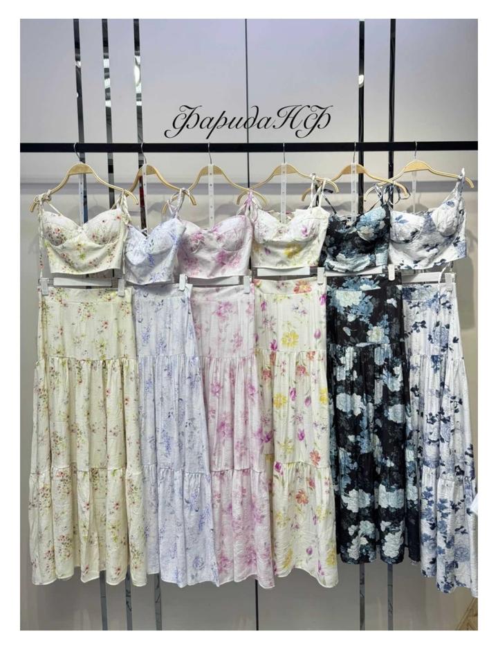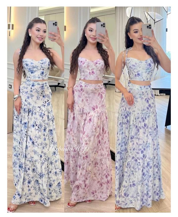 Двойка, состоящий из топа и юбки. Юбка в пол, макси, голубой цвет. Есть небольшой брак на топе. Топ сзади на завязках, как и лямки. Носилось лишь раз. Артикул: 334711