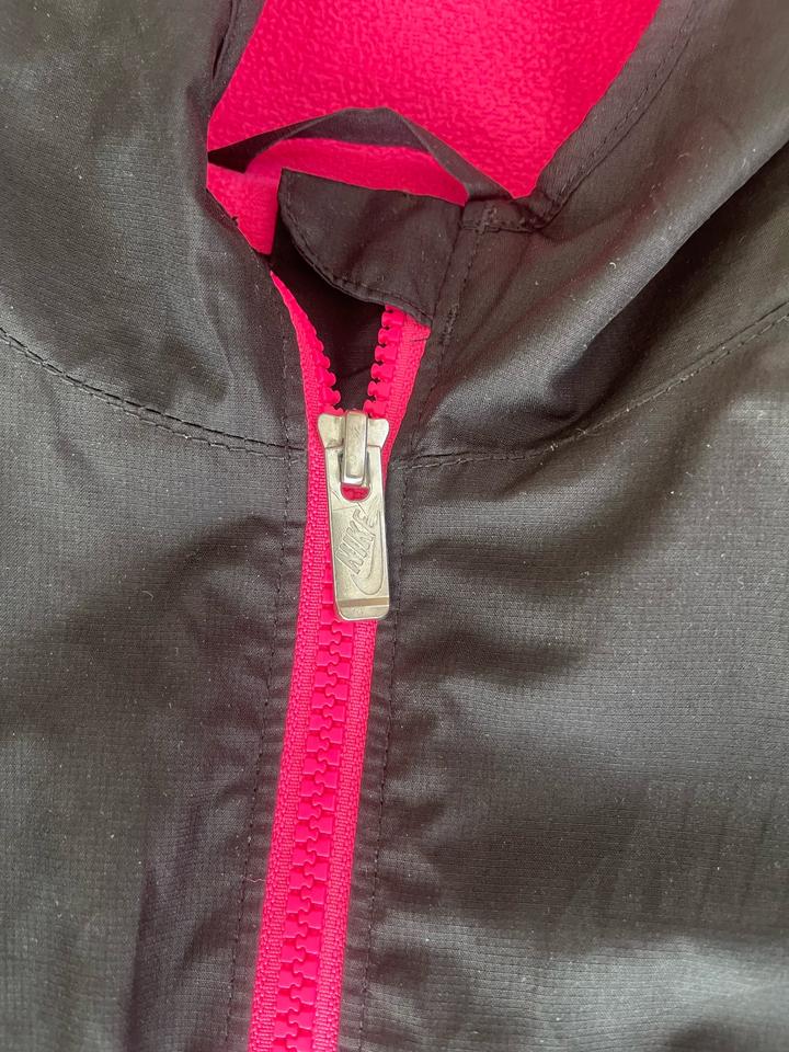 Оригинальная ветровка Nike 🌸 (4–5 лет / 104–110 см) Красивая и удобная ветровка Nike — оригинал, произведена во Вьетнаме. Цвет — чёрный с ярко-розовой молнией и флисовой подкладкой 💗 Очень стильная, лёгкая, но при этом тёплая — идеально подойдёт для весны, осени или прохладного лета. 📏 Размер: 5 (на рост 104–110 см / 4–5 лет) 🌸 Состояние: отличное, носили аккуратно 🧥 Внутри мягкий флис 🚫 Без пятен, затяжек и потертостей ✅ Оригинал Nike Артикул: 334717