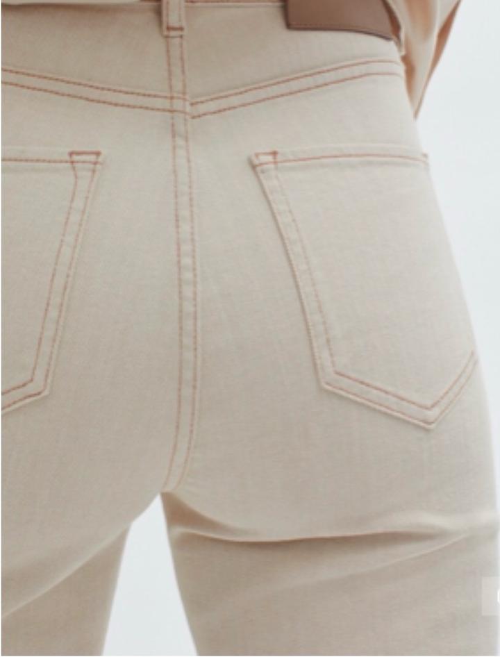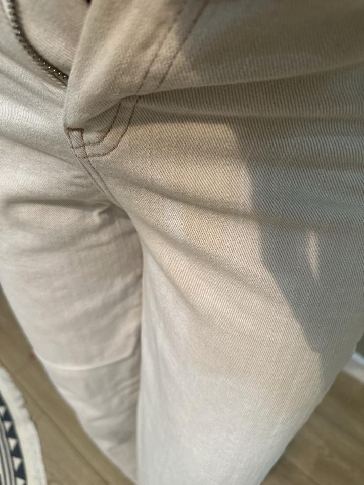Продам джинсы. В отличном состоянии. Без этикетки. В носке раз 5. Цвет топленого молока. Отлично подойдут на осенне-зимний сезон, будут освежать образ. Высокая посадка, фасон дудочки. Маркировка 36, идут в размер, не большемерят. 98% хлопок, 2% эластан. На рост 170 по щиколотку. Артикул: 335426