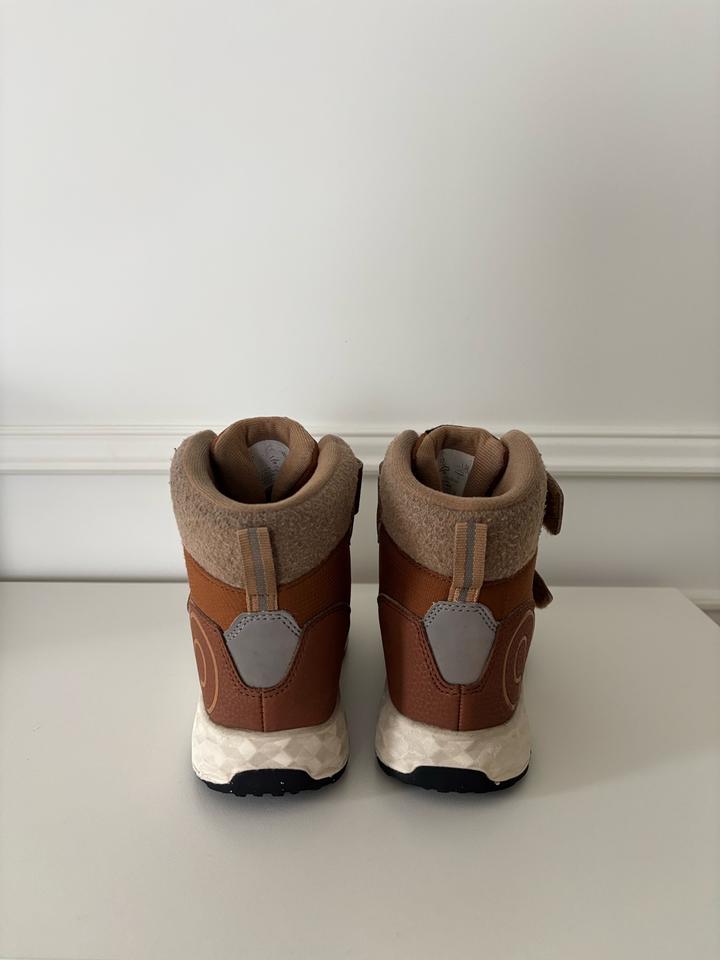 Ботинки в очень хорошем состоянии, после глубокой хим.чистки. Внутренние стельки, подошва обуви чистые(белые крапинки на подошве это рисунок на ней,а не грязь). Ботинки на липучке,легко надеваются самостоятельно. Есть светоотражающие детали и водонепроницаемые вставки. Подошва гибкая и легкая. Температурный режим до -20 градусов. Покупали в прошлом году, ребенок носил 1 сезон. Длина стельки 21см(предусмотрен запас). На фото есть таблица для проверки размера. Торга нет. Артикул: 335699