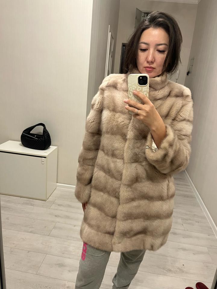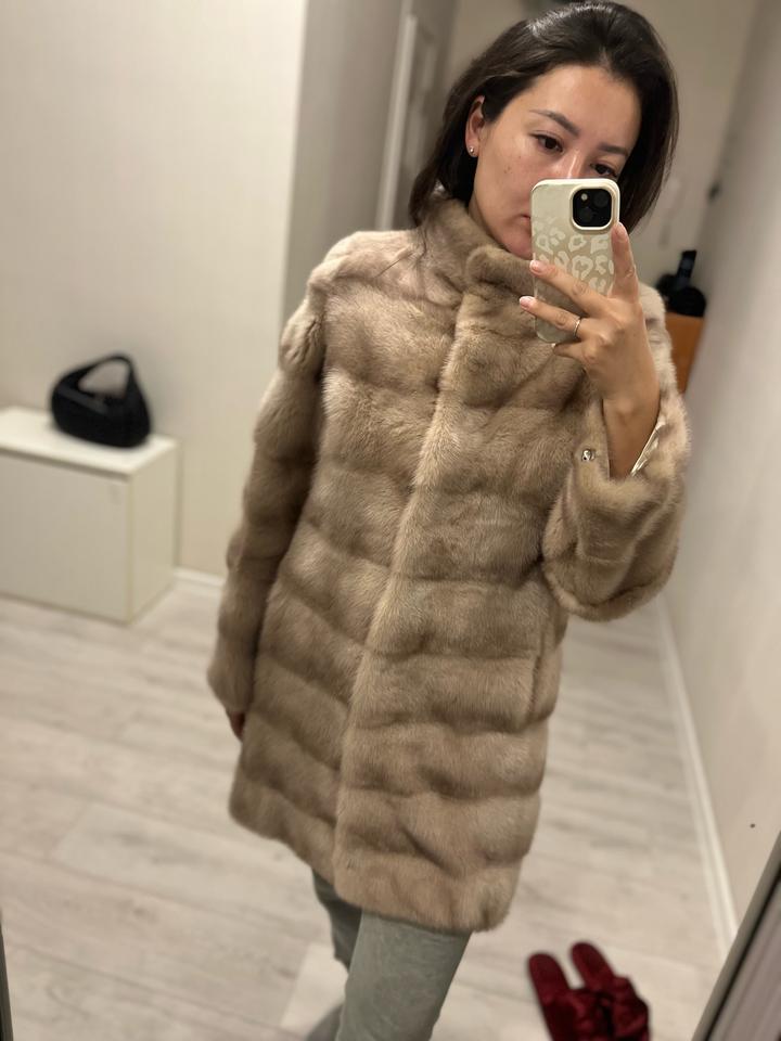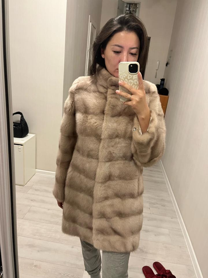 Шуба жемчужного цвета поперечная В идеальном состоянии 👌🏼 Размер S, M Я ношу М, рост 165, вес 60 кг, мне как раз По спинке 85 см Реально носила несколько раз Рукава отстегиваются и можно сделать 3/4 и носить с длинными перчатками👌🏼 Кулиска на талии и внизу, потайной карман, на вороте магнит Воротник-стойка Артикул: 336290