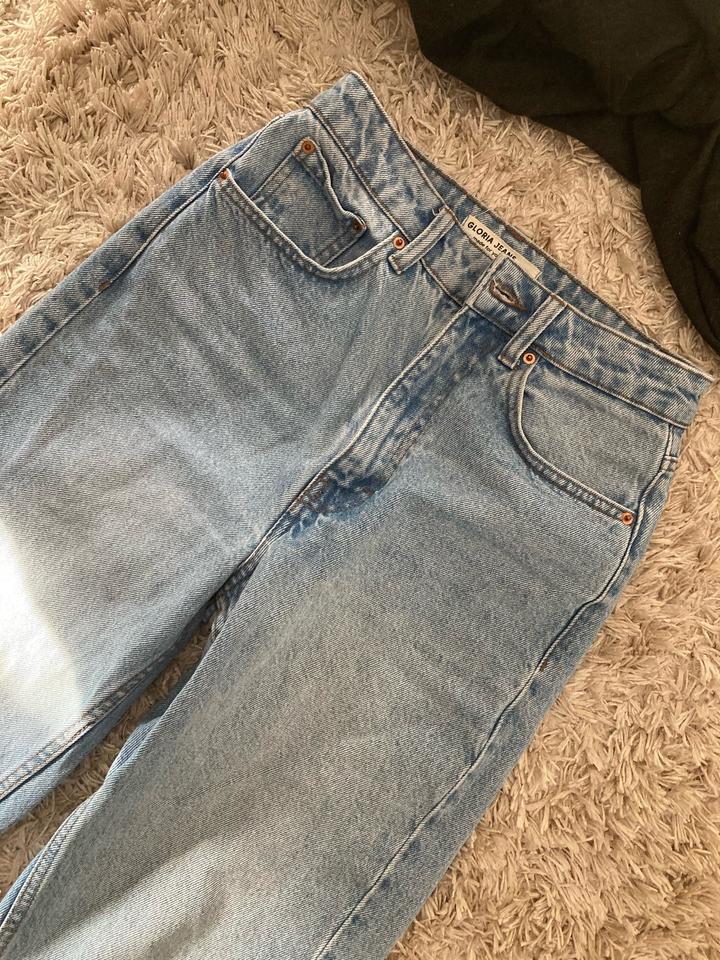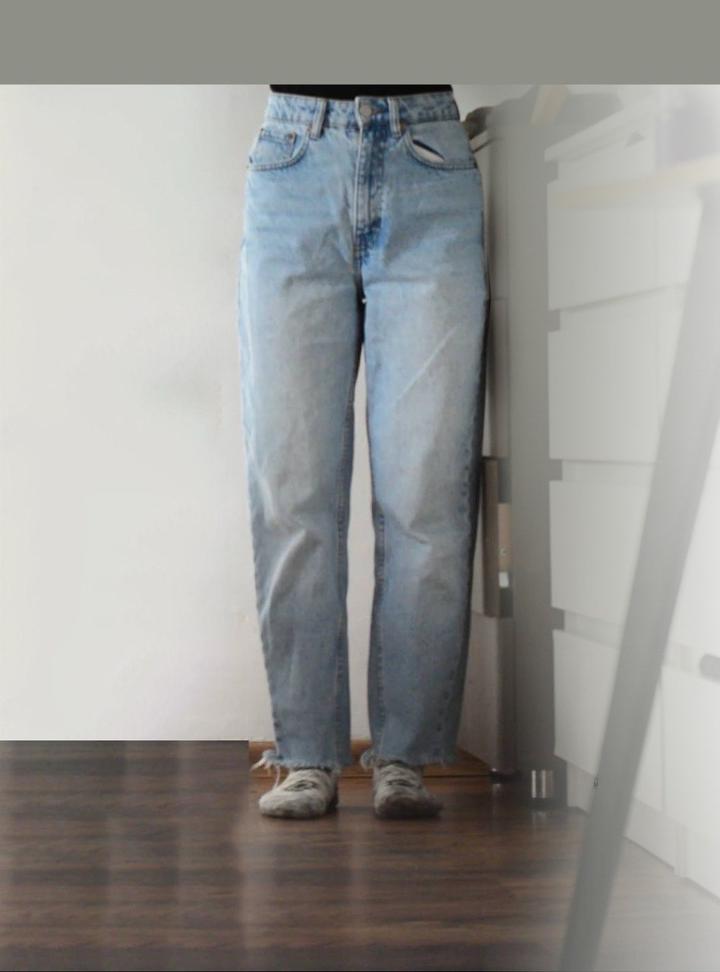 В идеальном состоянии без дефектов. Посадка высокая, не облегает, не wide, сижит свободно по фигуре, подчеркивает ноги. Артикул: 336690