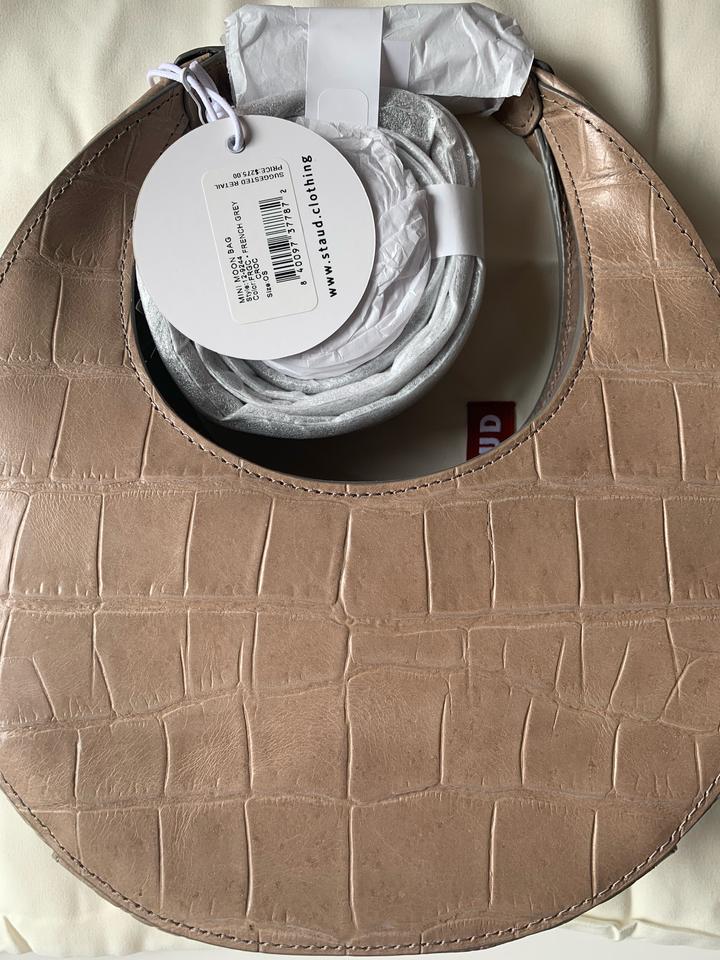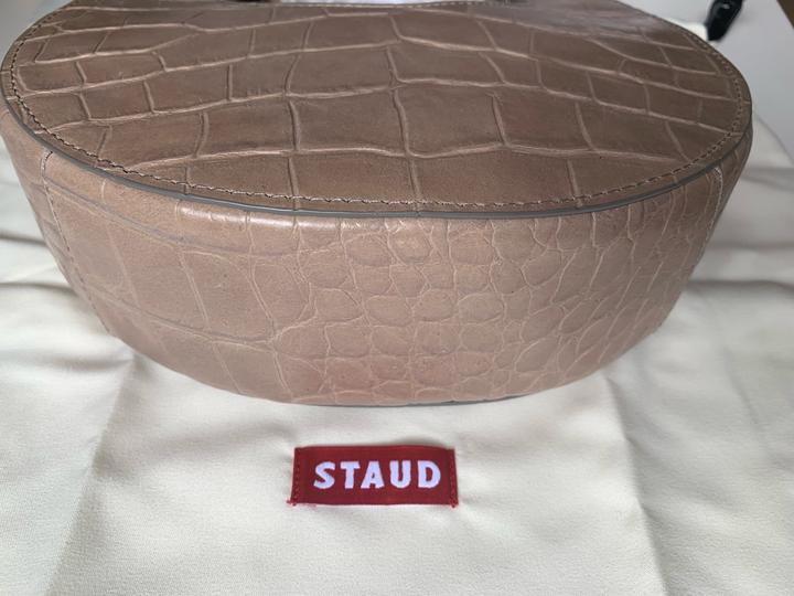 Эта сумка - культовая модель бренда STAUD, в стиле современного минимализма. Выполнена из натуральной кожи с тиснением под крокодила. Цвет нейтральный бежево-тауповый оттенок, легко комбинируется с любой одеждой. Ручка широкая, с застежками на кнопках, удобно лежит в руке, также есть длинный ремешок. Подкладка выполнена из натуральной замши, есть внутренний кармашек Приехала из США Артикул: 336802