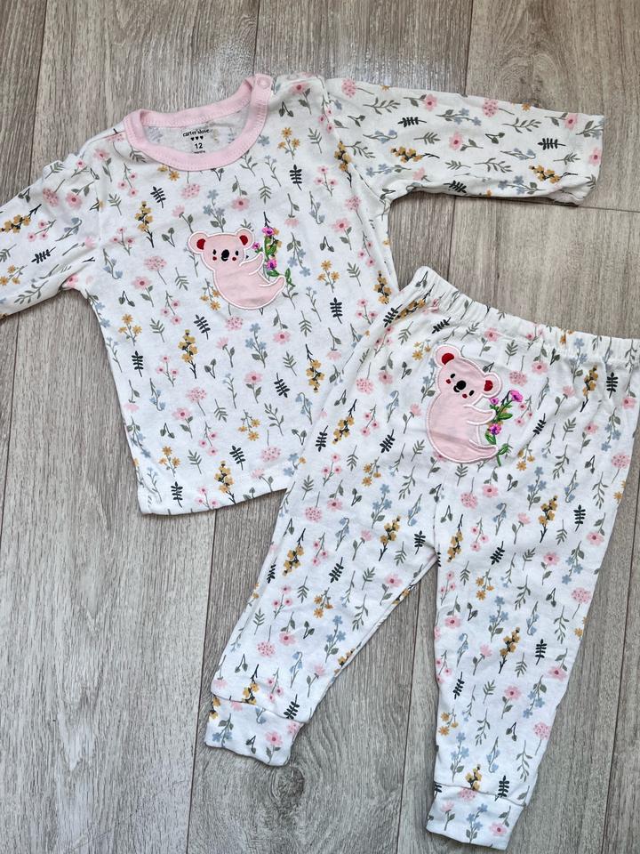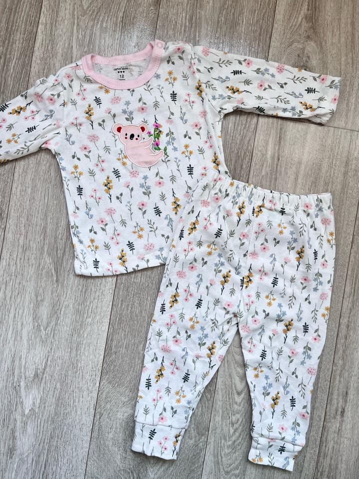 Двойка на девочку от Carters. Размер: 12 месяцев Чистый хлопок, красивый и нежный принт, штаны внизу на манжетах. Артикул: 337749
