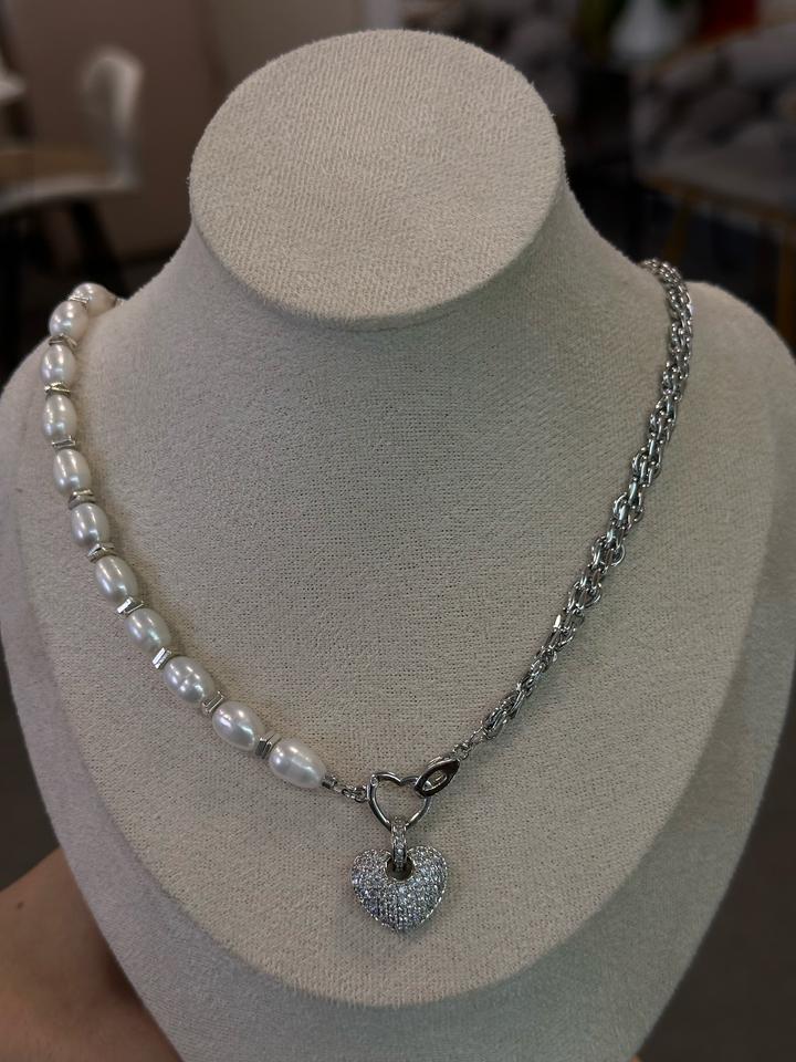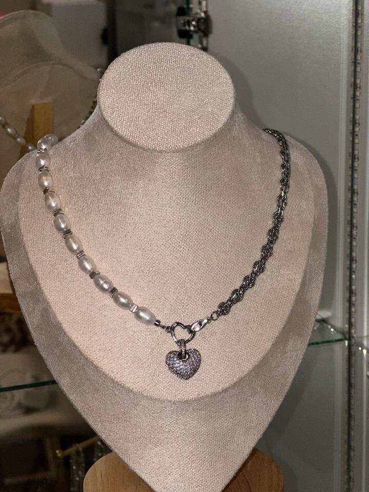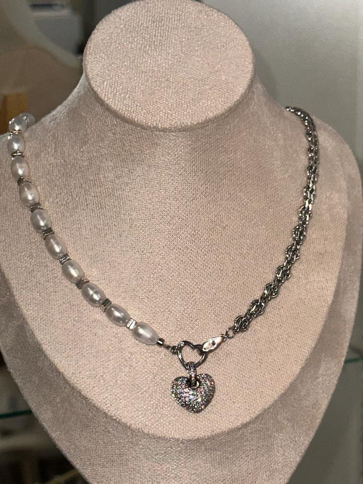 Колье ручной работы из жемчуга и цепей с роде вым покрытием, с подвеской и сердца со стразами! Подвеска съемная, колье трансформер Артикул: 338118