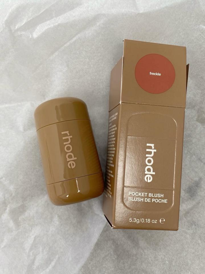 Самые популярные румяна Rhode Оттенок Freckle не сильно яркий Использовала меньше половины Остаток еще приличный Коробки нет Батч код присутствует Все строго оригинал Набирала кисточкой чистой, кожи лица не касалось Сроки хорошие Ценник в магазинах от 19тыс тг Отдам за 9000 тг Артикул: 338315