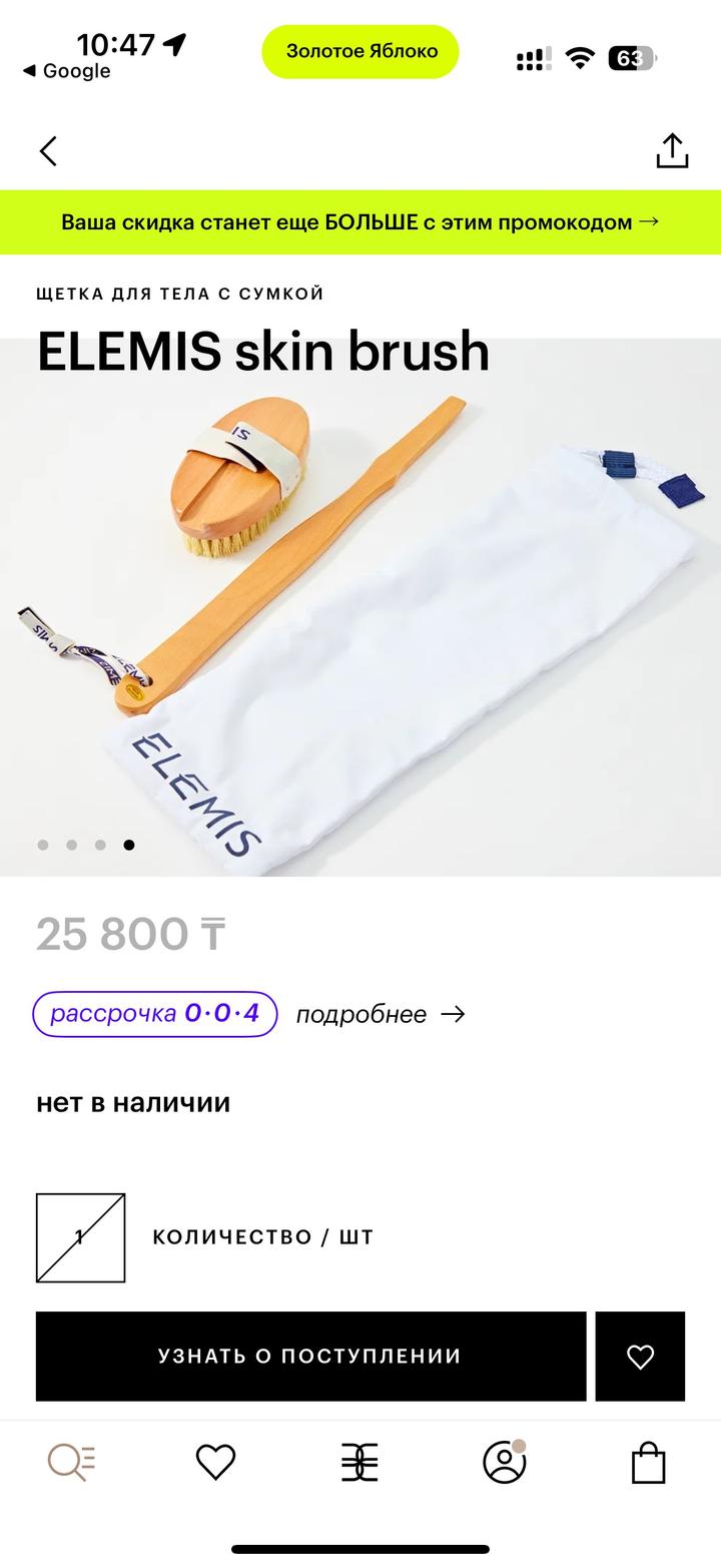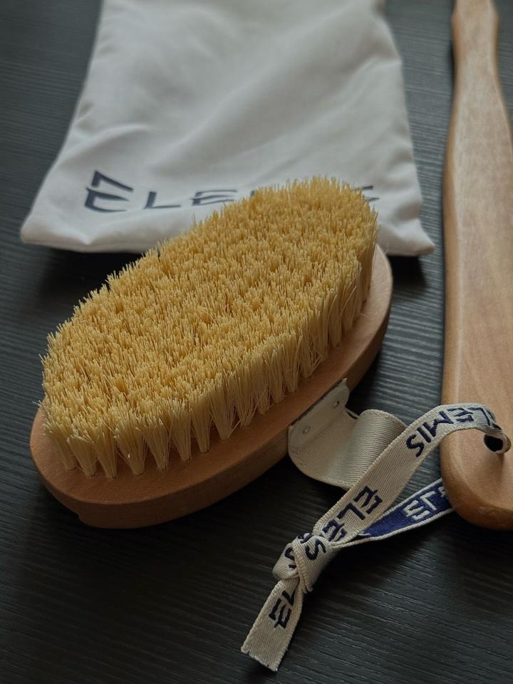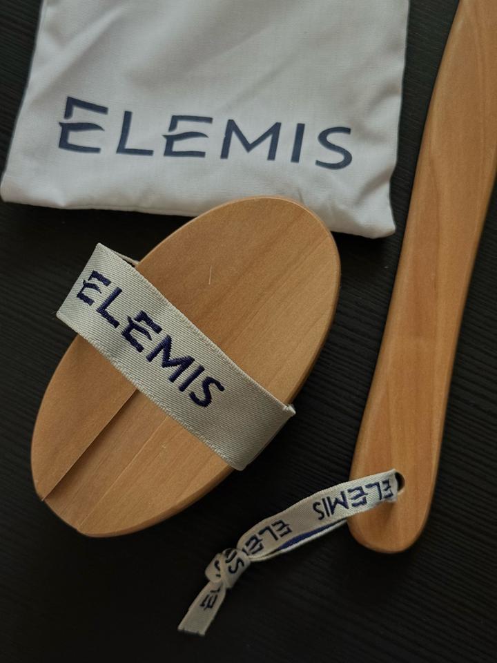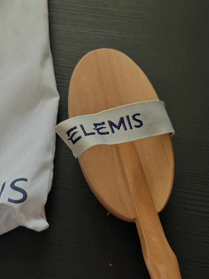 Щетка для тела от Elemis помогает снизить появление целлюлита, улучшает кровообращение и смягчает кожу. Подарили вместе с набором для душа, щеткой не пользовалась. Артикул: 338444