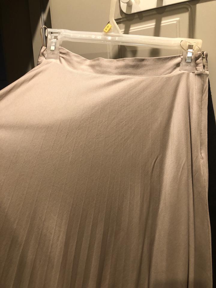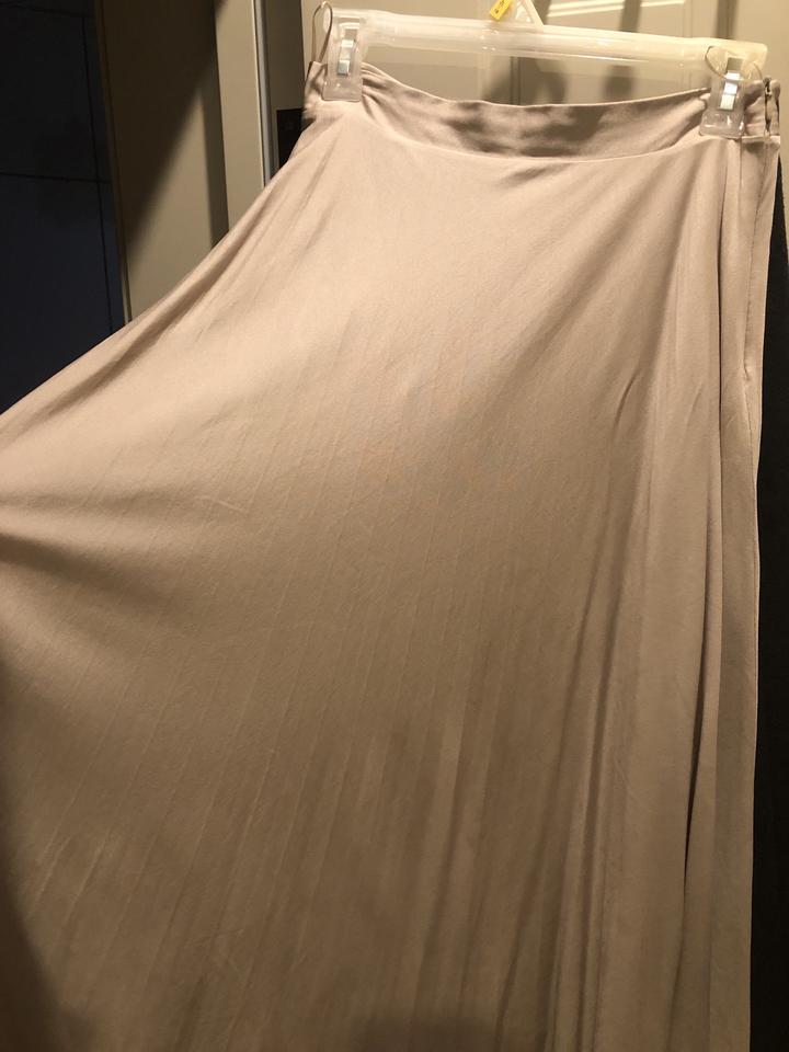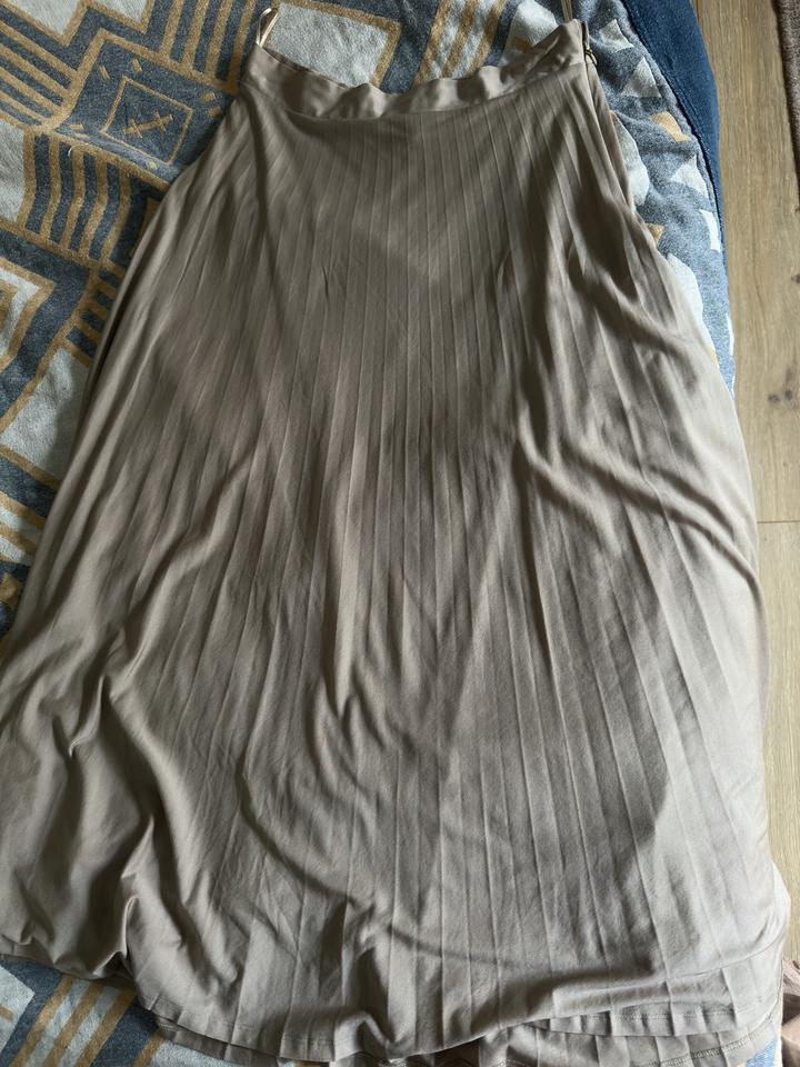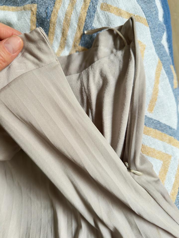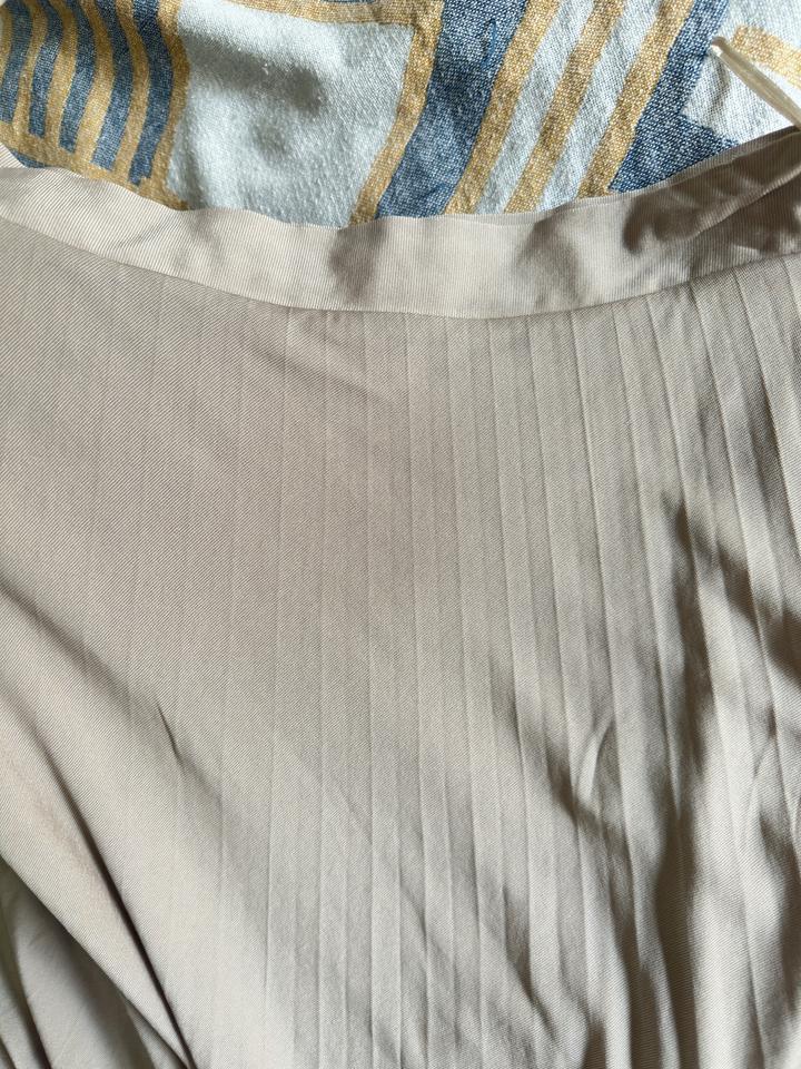 Базовая бежевая Юбка в хорошем состоянии. Сбоку замочек, отлично драпируется, летящая, легкая. На талию 73 см уже жмет мне. Оригинал с оф.сайта заказывала. Постирана, но не поглажена. Артикул: 338939