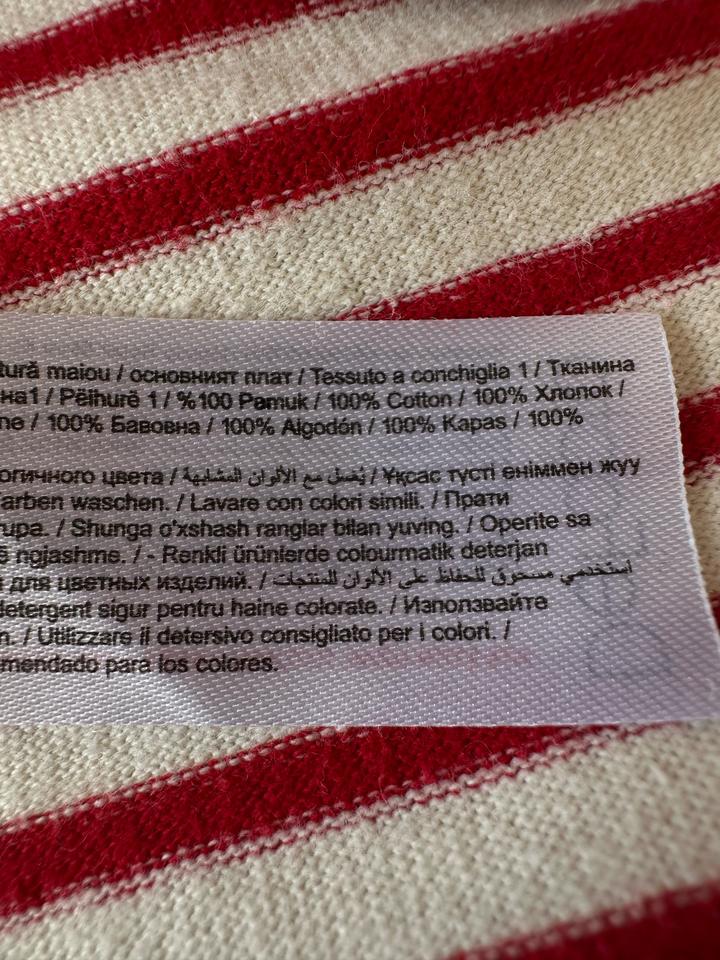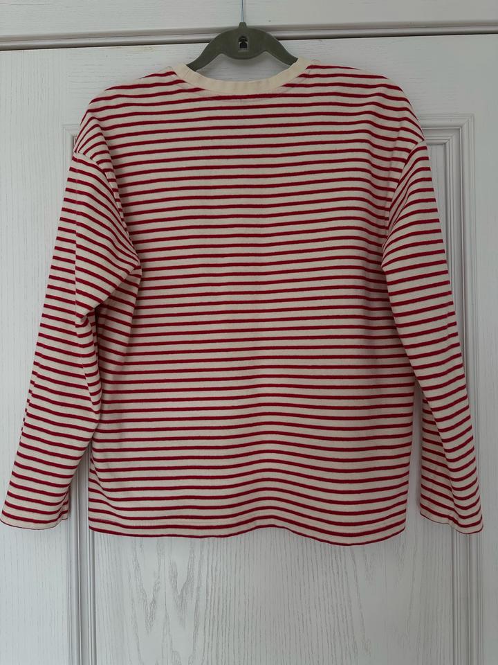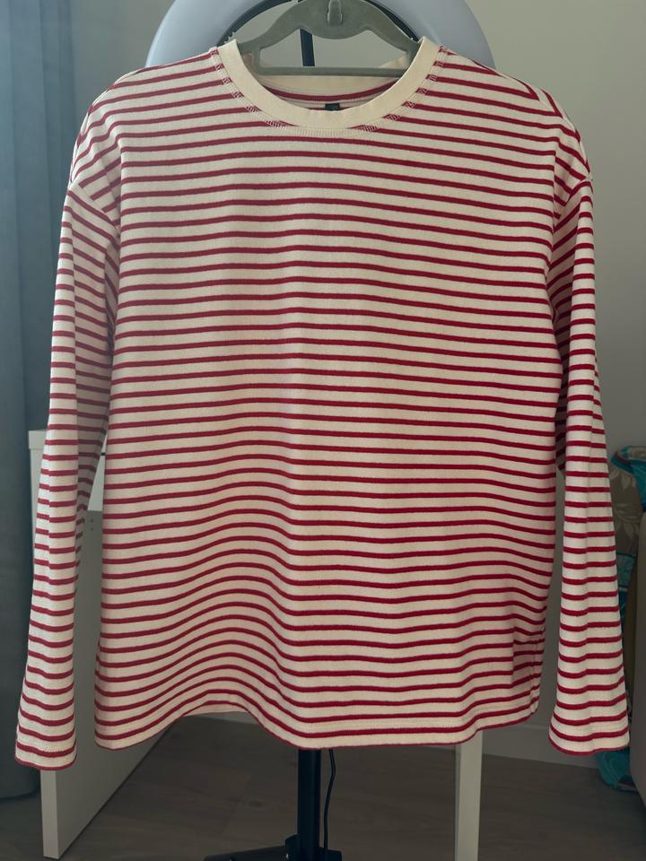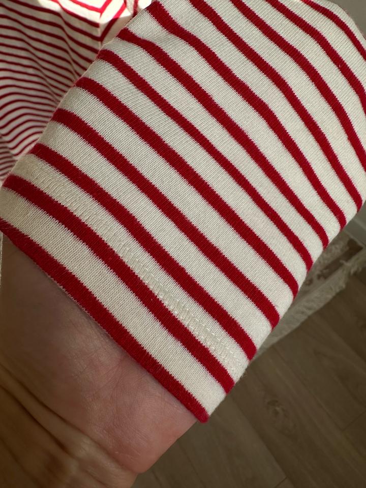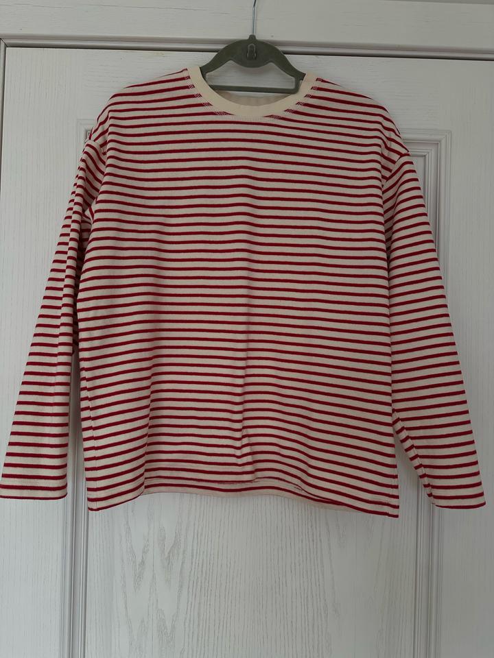 Тельняшка в красную полоску. Состав чистый хлопок 100%, легкий оверсайз. Мягкая, дышащая, уютная. Размер М. Без дефектов, катышек и затяжек. Состояние отличное. Артикул: 339537
