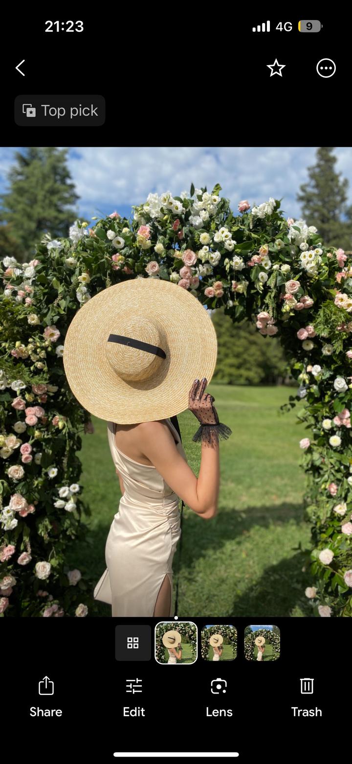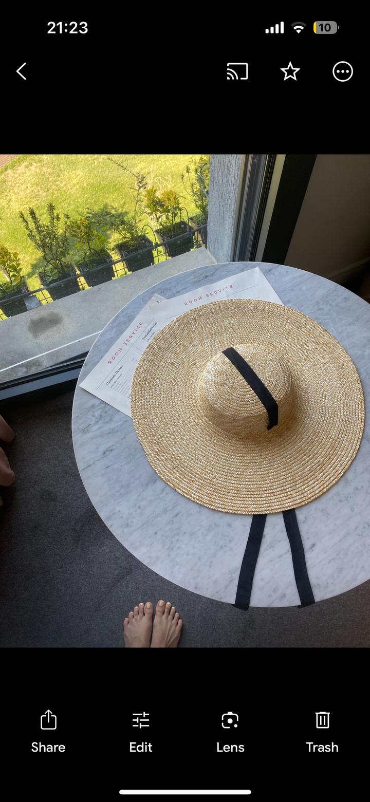 Очень качественная соломенная шляпа с широкими полями. Идеально на отдых, легко перевозится, не сыпется, хорошо прошита. Черные ленты можно завязать по разному. Артикул: 340880