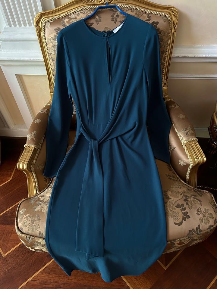 Платье английского бренда Reiss, куплено за 228 фунтов. Размер не подошел. Очень красивый сине-бирюзовый цвет. Ткань вискоза 98%, эластан 2%. Цвет как на фото с девушкой. На моем фото цвет не отражается правильно. Артикул: 341473