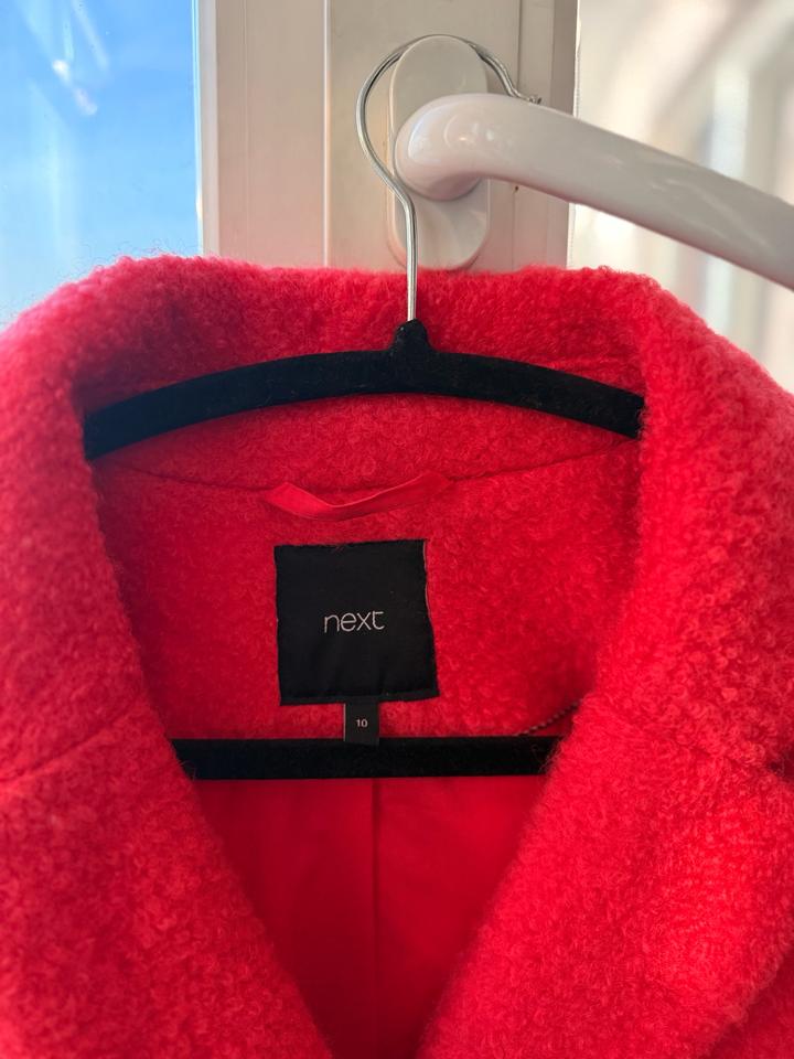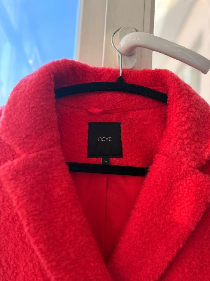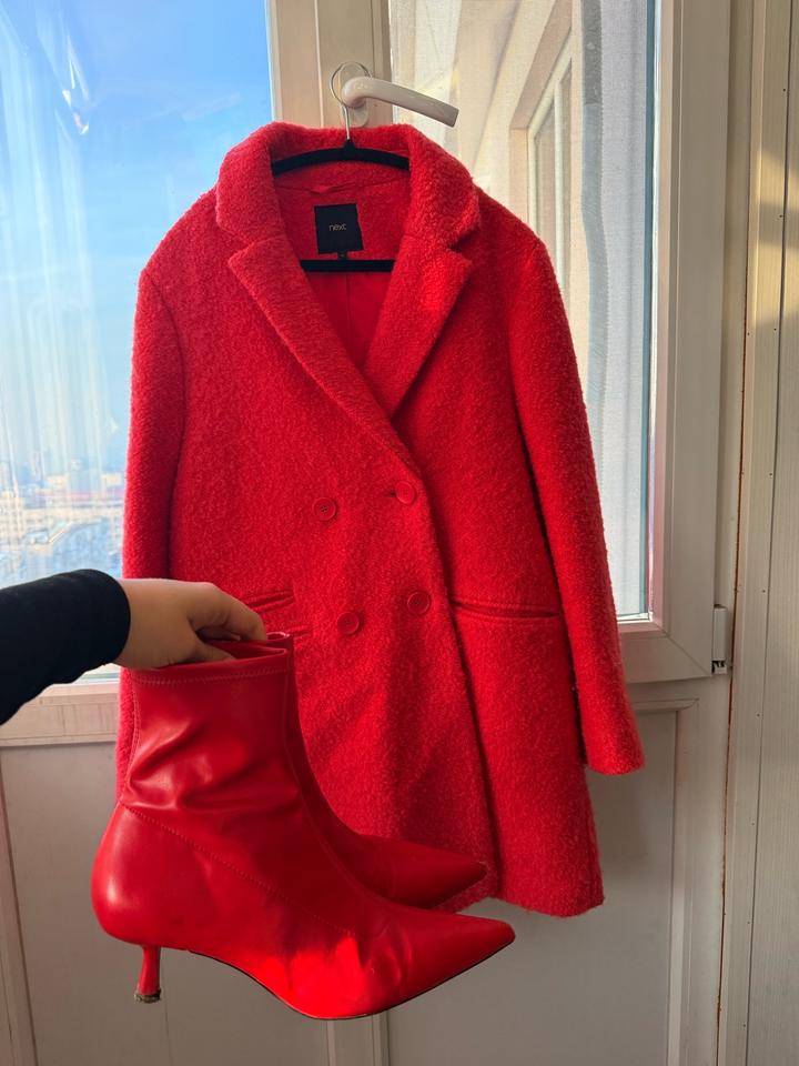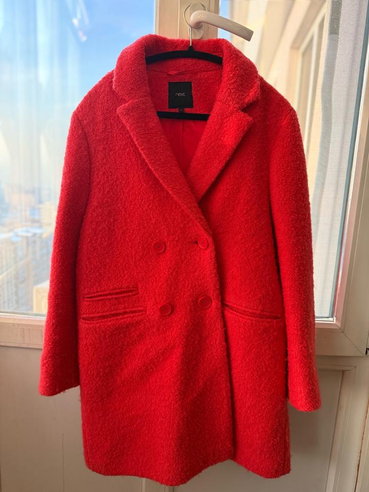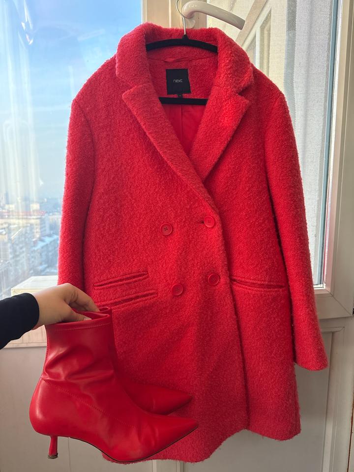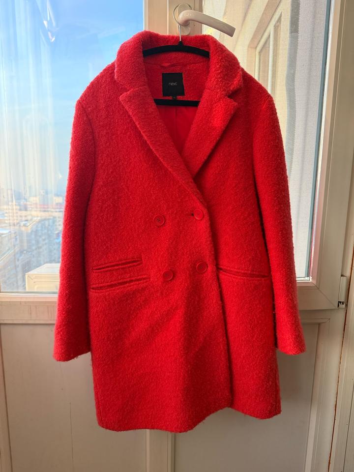 Ярко-алое пальто Next Размер UK 10 / EU 38 / на S (44 RU) Демисезонное, длина чуть выше колена Продаю стильное пальто насыщенного алого оттенка от бренда Next. Сестра покупала примерно 2–3 года назад, носила аккуратно, состояние очень хорошее — без катышков, без потертостей, подклад целый. Пальто тёплое, мягкое, комфортное, красиво ложится по фигуре и добавляет образу яркости. Отличный вариант на весну, осень и тёплую зиму. Характеристики: • Размер UK 10 / EU 38 — хорошо сидит на S Артикул: 341996