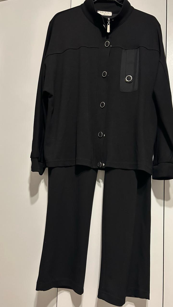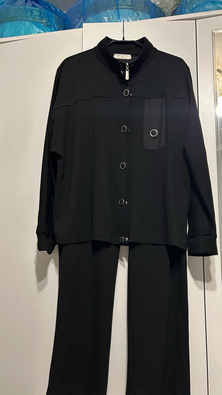 Трикотажный костюм черного цвета, производство Турция , фирма Salkim. В идеальном состоянии. Одевалось 1 раз. Размер 50, но большемерит в реале подходит от 52 до 54. Верх идет оверсайз свободный фасон. Сезон - демисезон. Без дефектов. Артикул: 342181