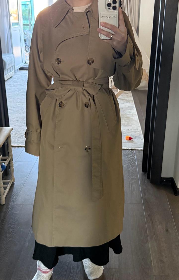 Тренч как новый, носила пару раз, размер С, идет как чуть оверсайз, поэтому подойдет и на М спокойно. Артикул: 342403