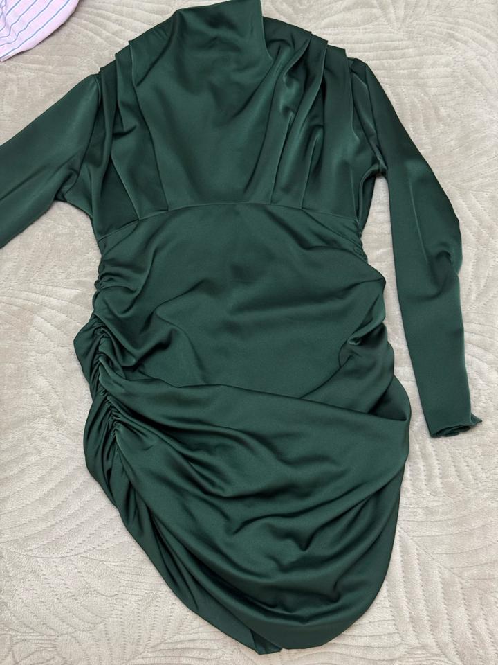 Зеленое платье из атласа В идеальном состоянии Было в носке 1-2 раза на мероприятие Размер М Артикул: 342750
