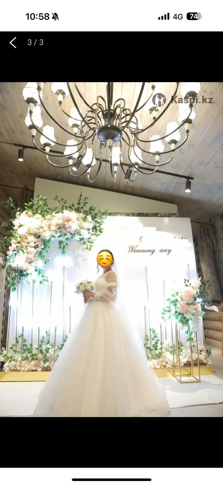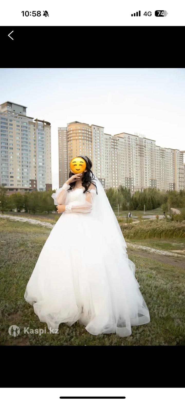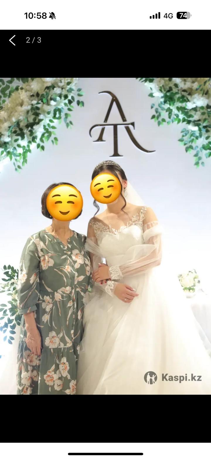 Продам счастливое свадебное платье. Дизайнерское свадебное платье от казахстанского дизайнера Гульназ Алкеновой. +Фата +Свадебный букет невесты +Кольцо под платье Размер платья - 44. Но можно хорошенько затянуть сзади) Платье шикарно село на тело, сзади корсет, впереди открытые плечи, с вышитыми цветочками. Рукава длинные, на конце пуговицы. Очень нежное и женственное. Пышное, не тяжелое, очень удобно при ходьбе. Я танцевала в нем. На рост 163 см с каблуками идеально село. Артикул: 343394