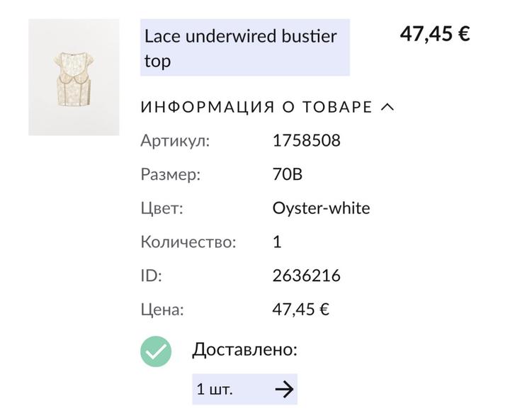 кружевной корсетный топ Zara в молочном цвете (новый, с биркой) - не подошел размер доп.вопросы в тг как ник Артикул: 343927