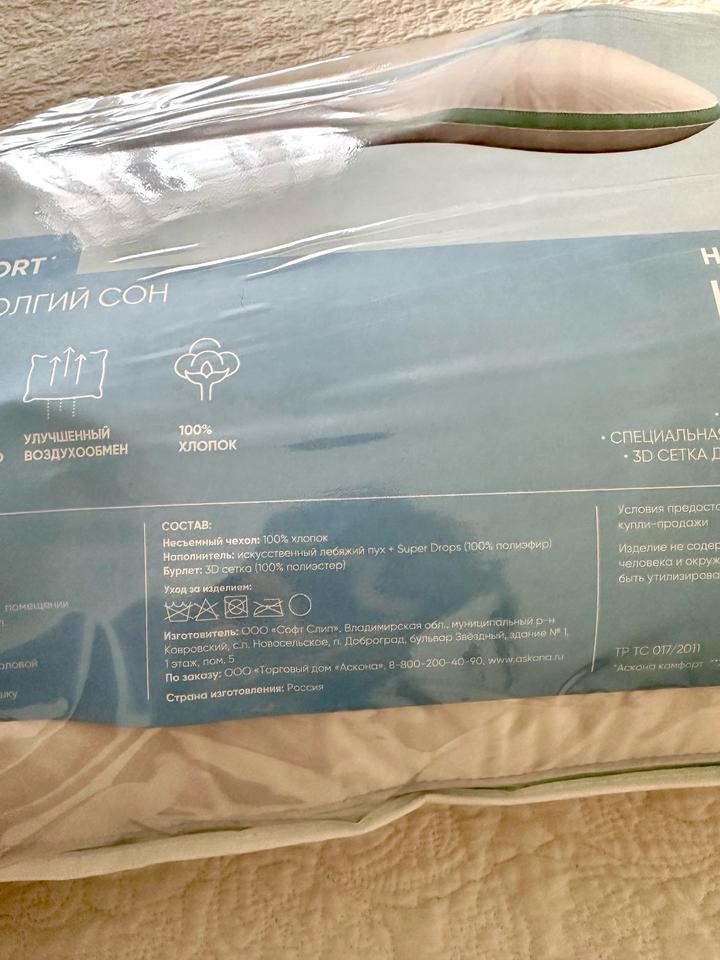 Продам новые качественные подушки от Askona, серия бренда comfort hybrid. наполнитель лебяжий пух, чехол - хлопок 100%, по периметру воздухопроницаемая сетка. Обладает специальной выемкой под плечо деликатно поддерживает голову и шею, улучшенный воздухообмен благодаря сетке, сохраняет форму. Высокий срок службы. Размер 63*45. В наличии есть 2 новые упакованные подушки. Цена указана за одну. Продаю так как у меня просто лежат после покупки, так пусть обретут свою хозяйку! Артикул: 343934