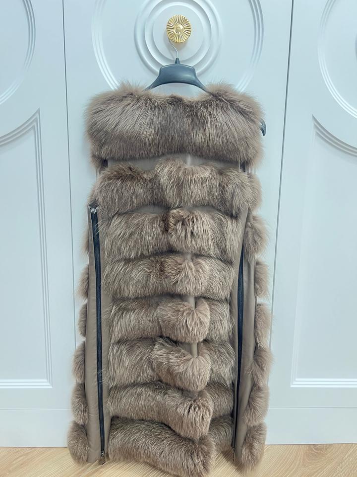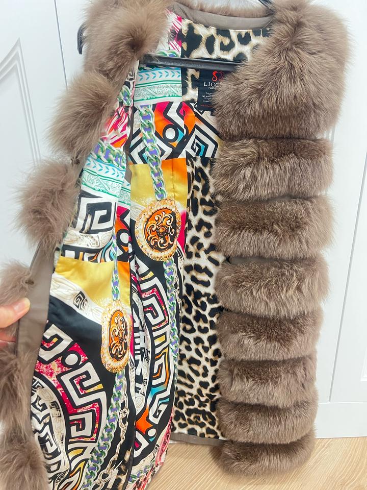 Роскошный жилет из натурального меха песца, производство Греция, выделка меха под Соболь в шикарном карамельном оттенке. Размер 42-44, по бокам имеются молнии , длина до колена. В подарок легкий пуховичок, который можно носить под жилет. Состояние новой вещи, после химчистки. Артикул: 344197