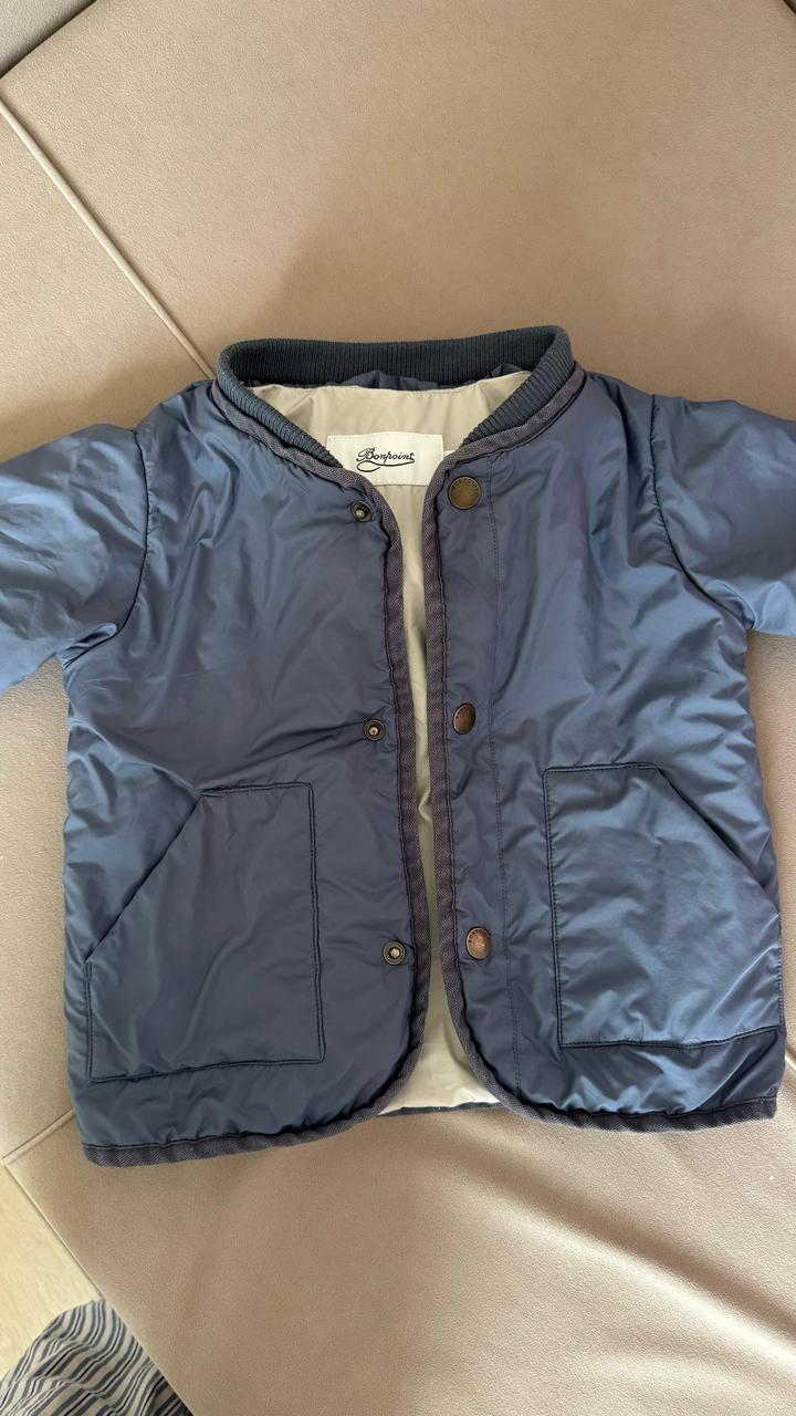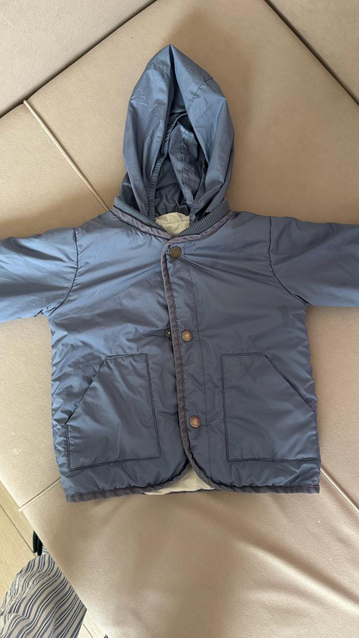 Голубая курточка с карманами, на застяжках. Имеется скрытый капюшон. Очень стильная. В хорошем состоянии. Артикул: 344479