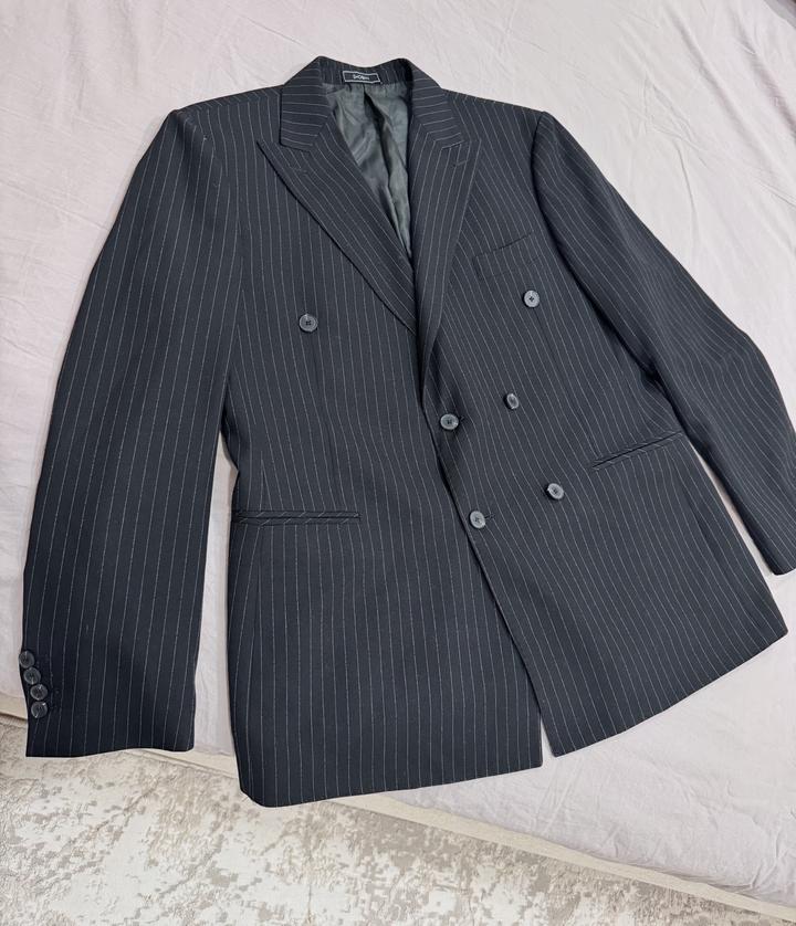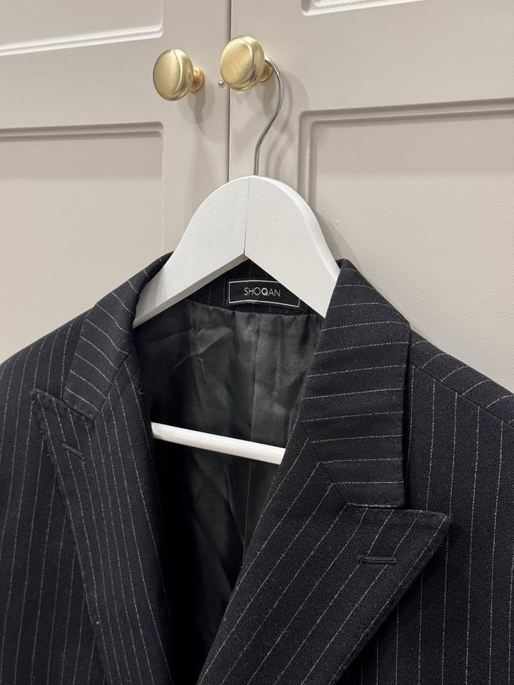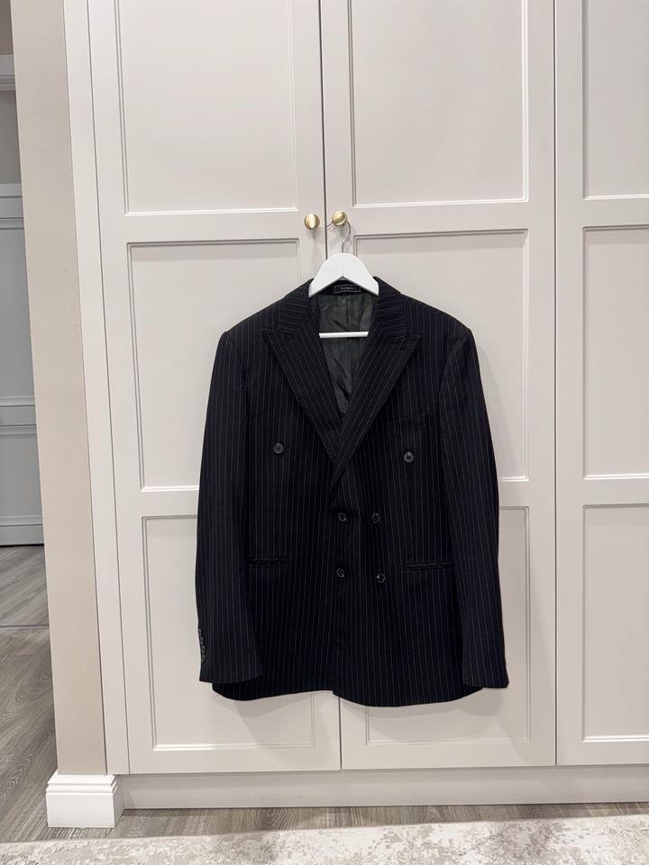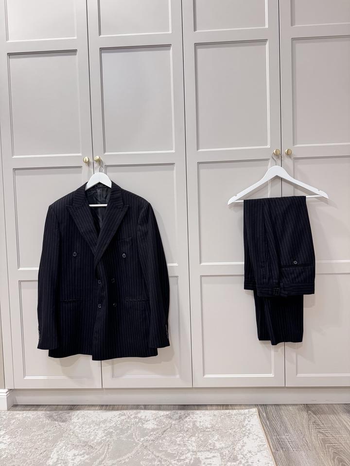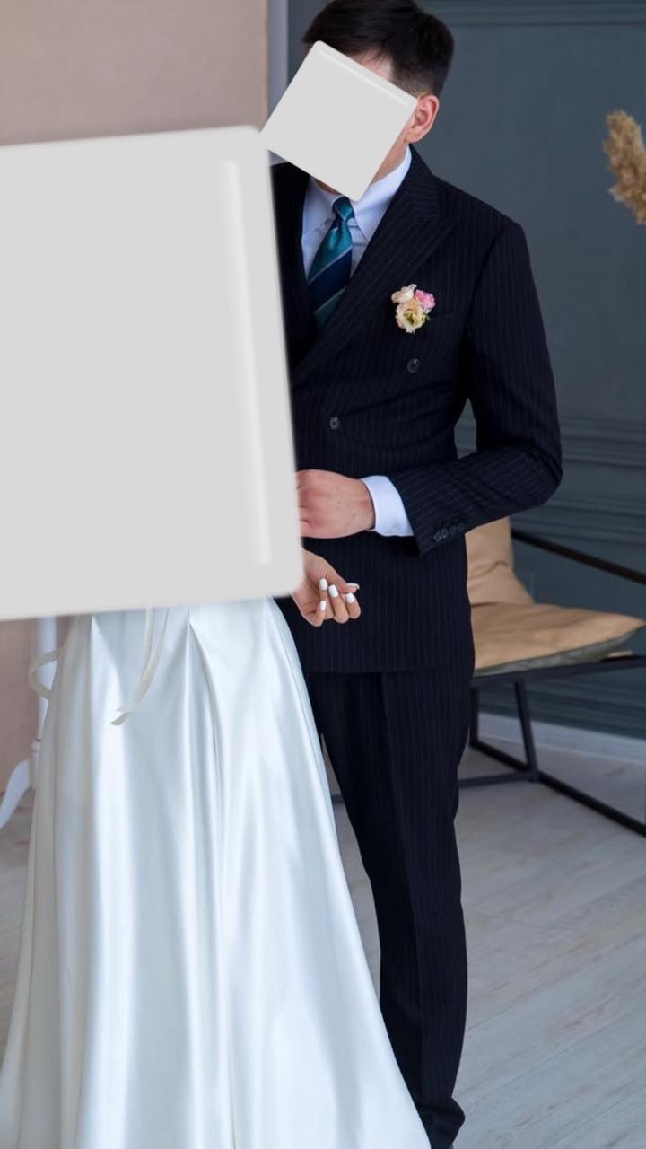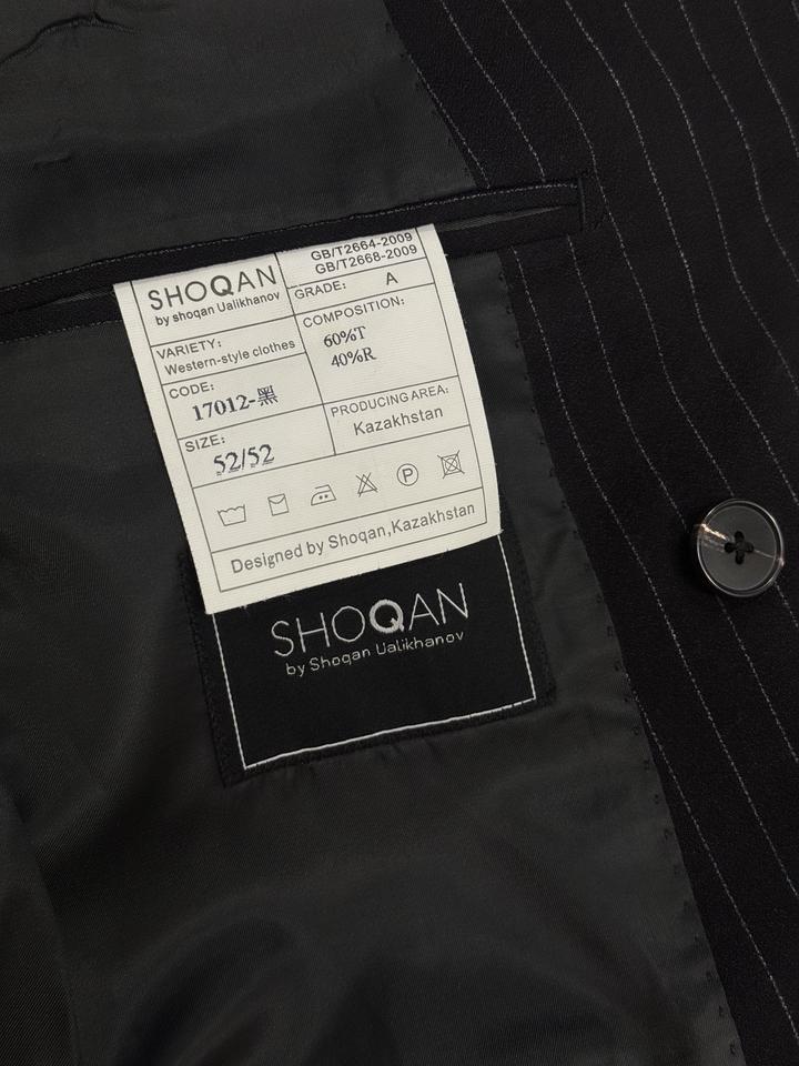 Размер 52. Оригинальный костюм из Shoqan, надевал 2 раза на свадьбу и узату. Черный в светлую полоску, очень стильный. Состояние отличное, как новый. Привезу на пункт доставки за 1, максимум 2 дня. Есть туфли к этому костюму, тоже от Shoqan, размер около 43-44, отправлю фото по запросу. Артикул: 344805