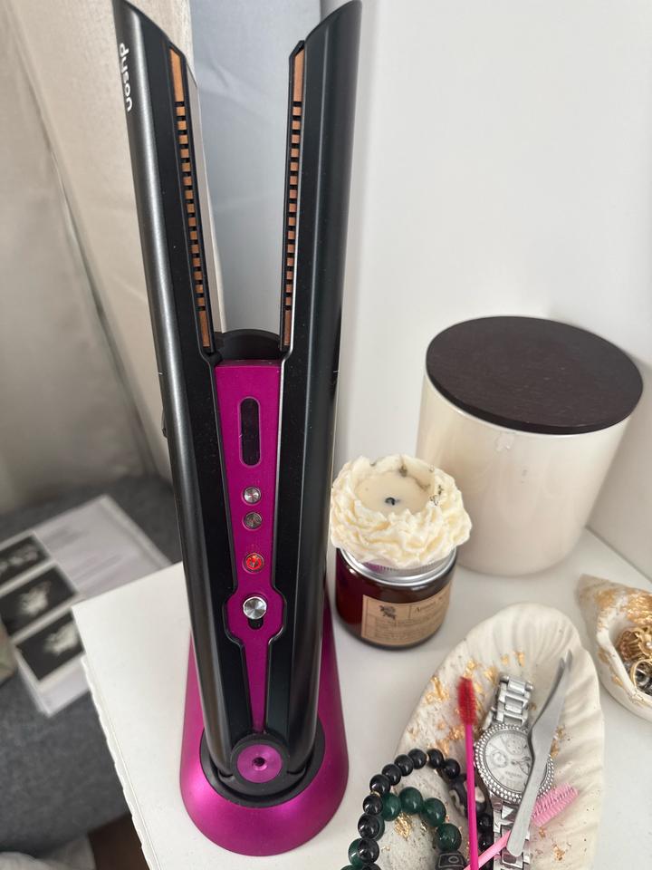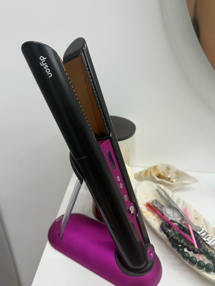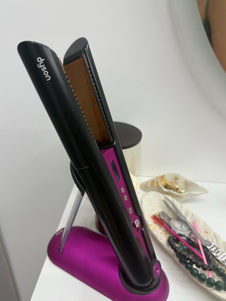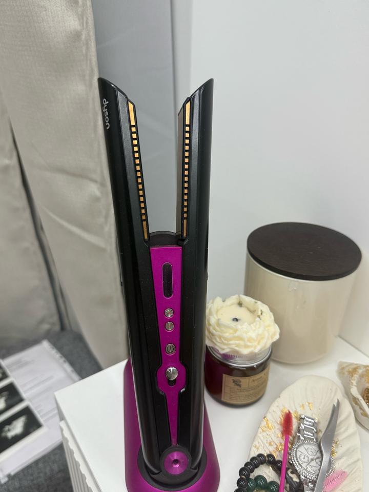Состояние отличное — пользовалась очень аккуратно. Быстро выпрямляет волосы, не пережигает, делает блестящими и гладкими. Можно пользоваться без провода — очень удобно для локонов и выпрямления. Почему продаю: просто лежит без дела. Комплектация: ✔️ Утюжок Dyson ✔️ Зарядная подставка ✔️ Кабель зарядки ✔️ Всё работает идеально Преимущества Dyson: • Гибкие пластины – не ломают волосы • Держит заряд долго • Подходит для любого типа волос • Профессиональный результат дома Артикул: 345294