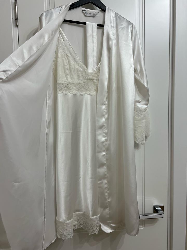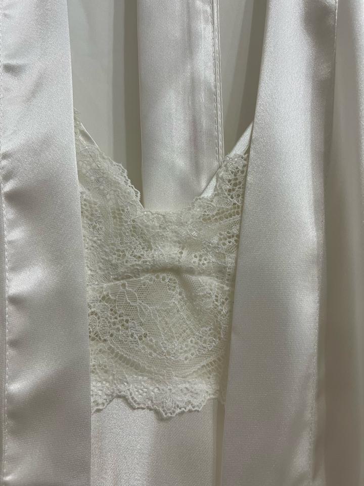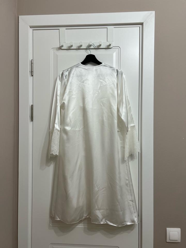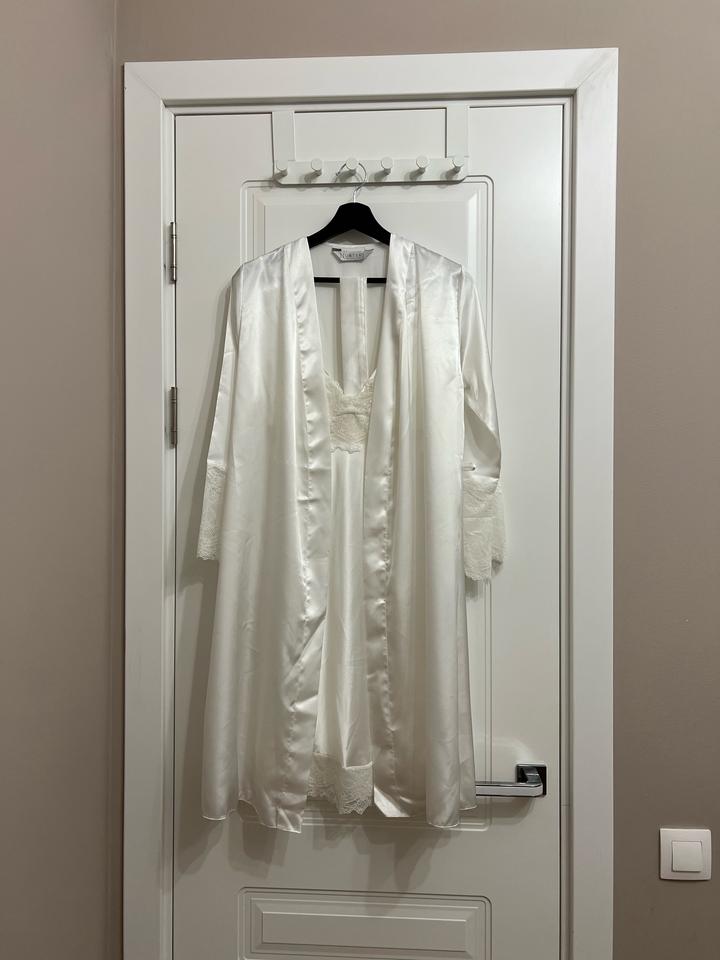 Пеньюар (сорочка и халат). СостоНие отличное, надевала один раз на свадебную фотосессию. На рост 166 будут до колена. Очень красивый и нежный комплект. Красивое кружево. Промокод на первую покупку -2000 8WYZXF Артикул: 345666
