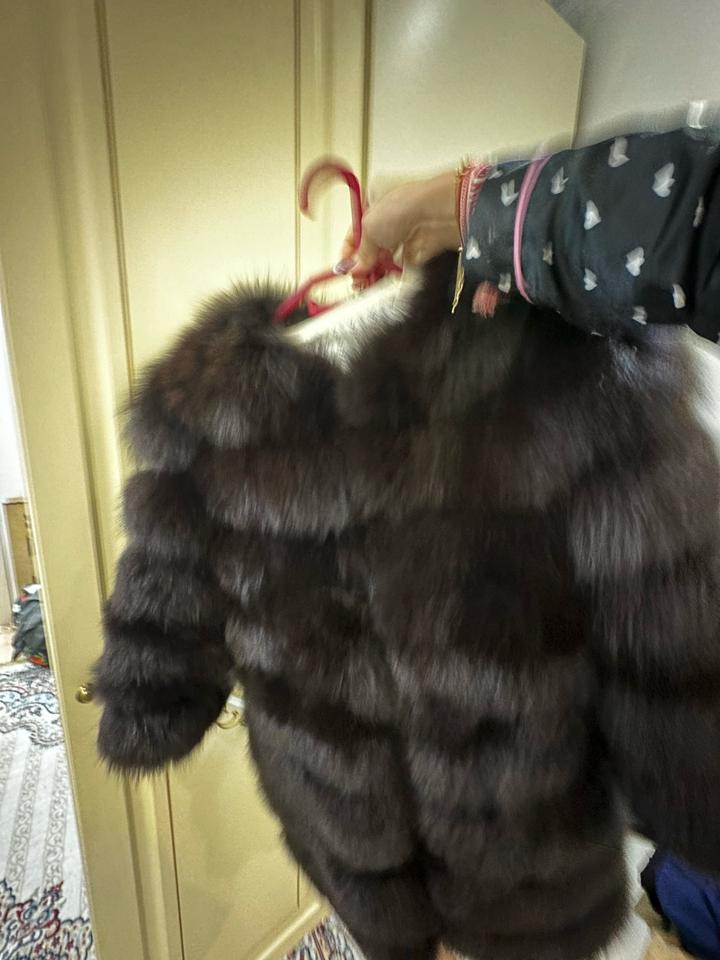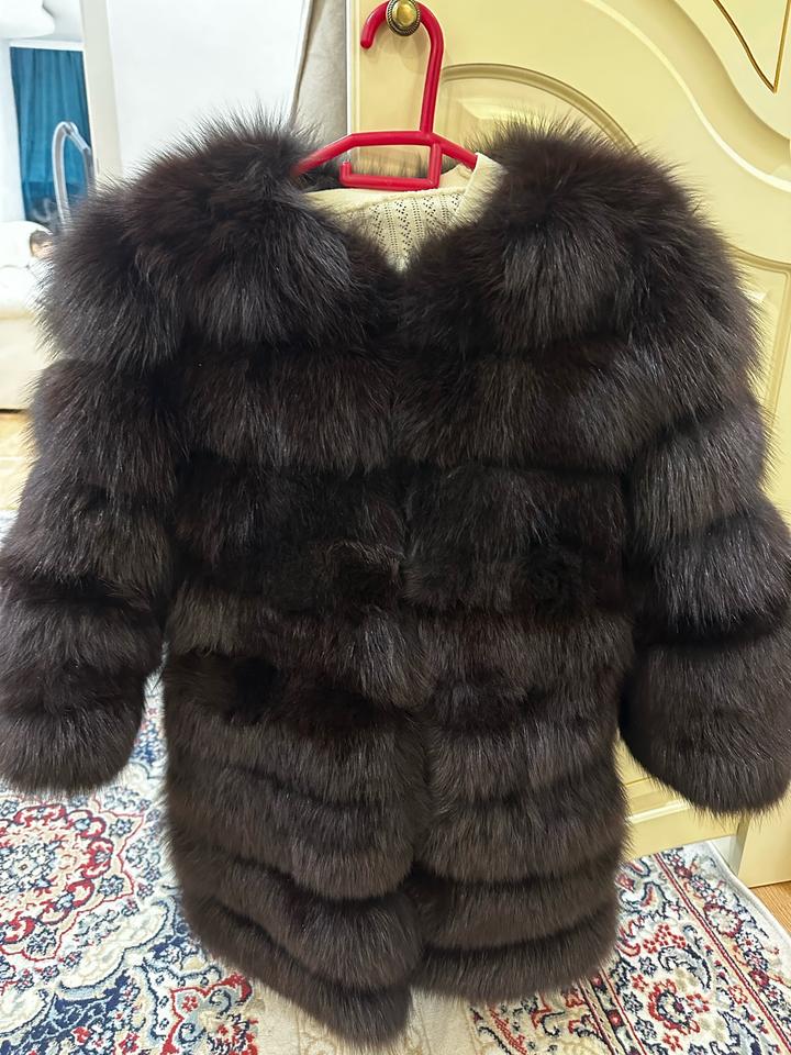 коричневая шуба, хорошего качества, натуральный песец, попу закрывает Артикул: 346378
