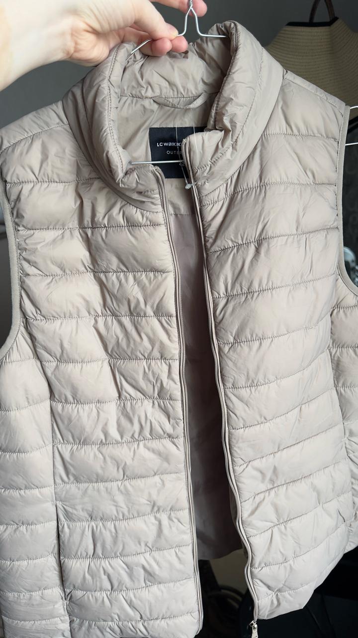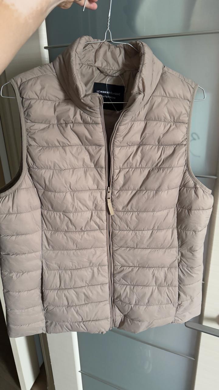 Цвет тауп : серо-бежевый😻 Безрукавка на синтепоне теплая на замке , есть карманы на кнопках ,воротник стойка . Можно как первый слой надевать под пальто и удобно и красиво получается комплект ,цвет спокойный элегантный подходит под разные стили и спорт-шик и кэжуал Размер 42 турецкий +6 добавляем будет 48~50 Состояние идеальное стала мала по размеру приходится продавать Стирается очень легко в стиральной машинке ,форму не теряет Также вводите промокод JF3AMA и будет еще скидка в корзине Артикул: 346960