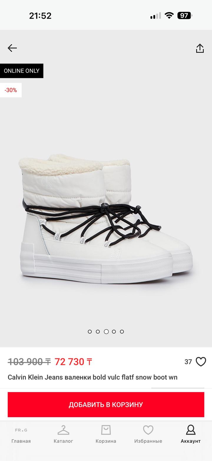 Calvin Klein валенки белые 38 размера Артикул: 347608