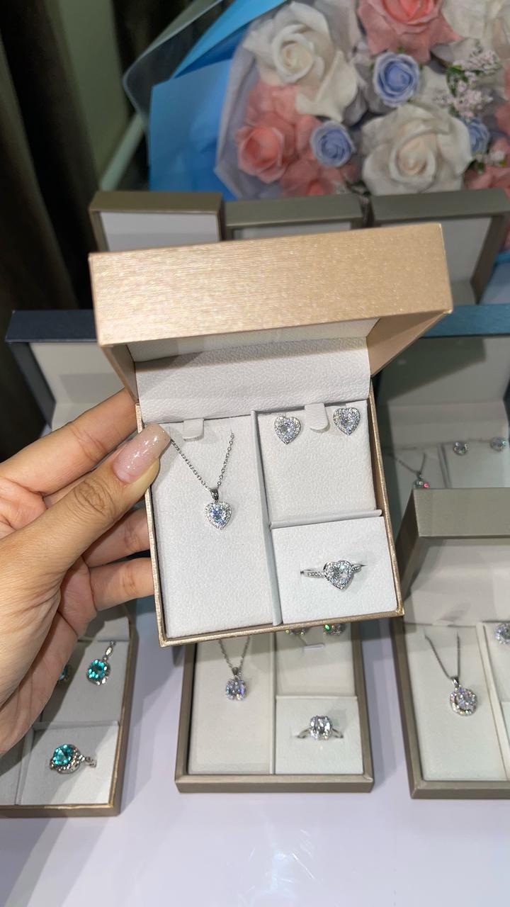 • серьги • кольцо • кулон на цепочке в виде сияющих сердечек, яркими камнями с сильным блеском. Не темнеет, проверено лично. Камни красиво играют при любом освещении, смотрятся дорого и аккуратно. Воспользуйтесь моим личным промокодом 💌 вам сделают скидку в приложении 6RRONY Артикул: 347710