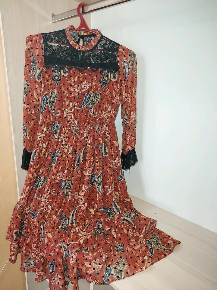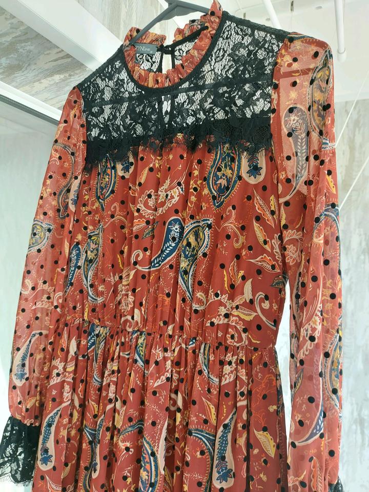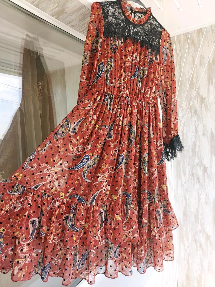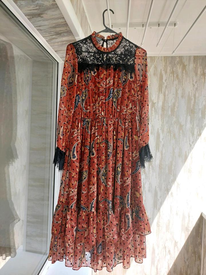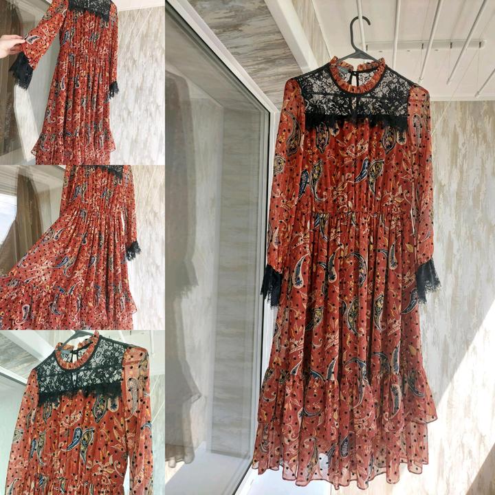 Платье коричневого цвета с узорами DZYNLINE. Размер 44. В наличии с кожаным ремешком. Состояние нового, без этикетки. Покупала в Казахско-Французском центре за 36.000 тг Артикул: 350035